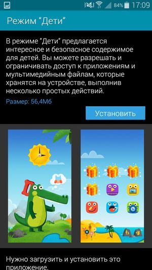 Кстати, вопрос безопасности укрепился в Samsung Galaxy S5 и еще одним нововведением: теперь за счет появления режима «Дети» можно открыть доступ только к определенным дозволенным программам, после чего спокойно доверить устройство за 30 тысяч рублей поиграть ребенку.