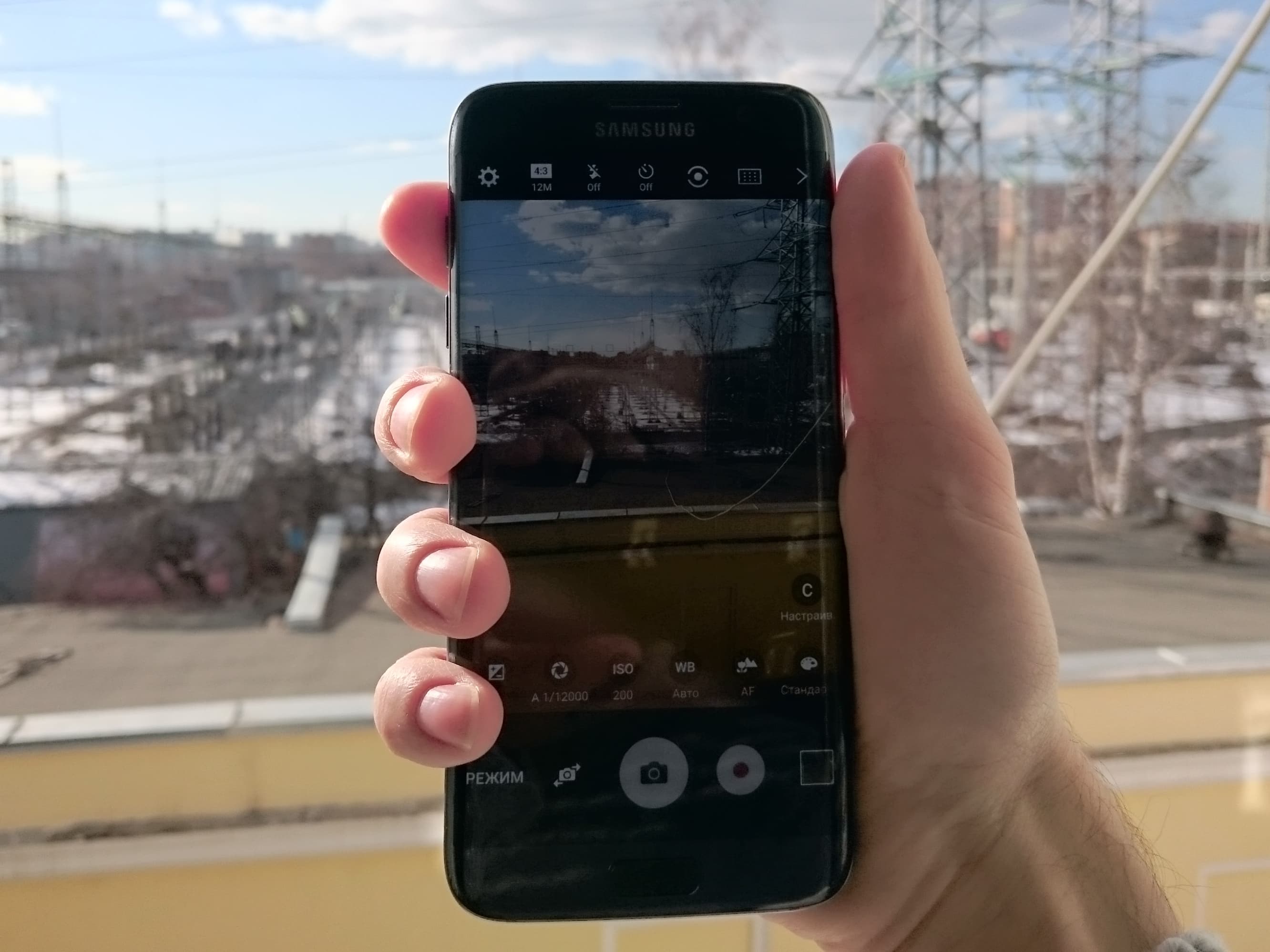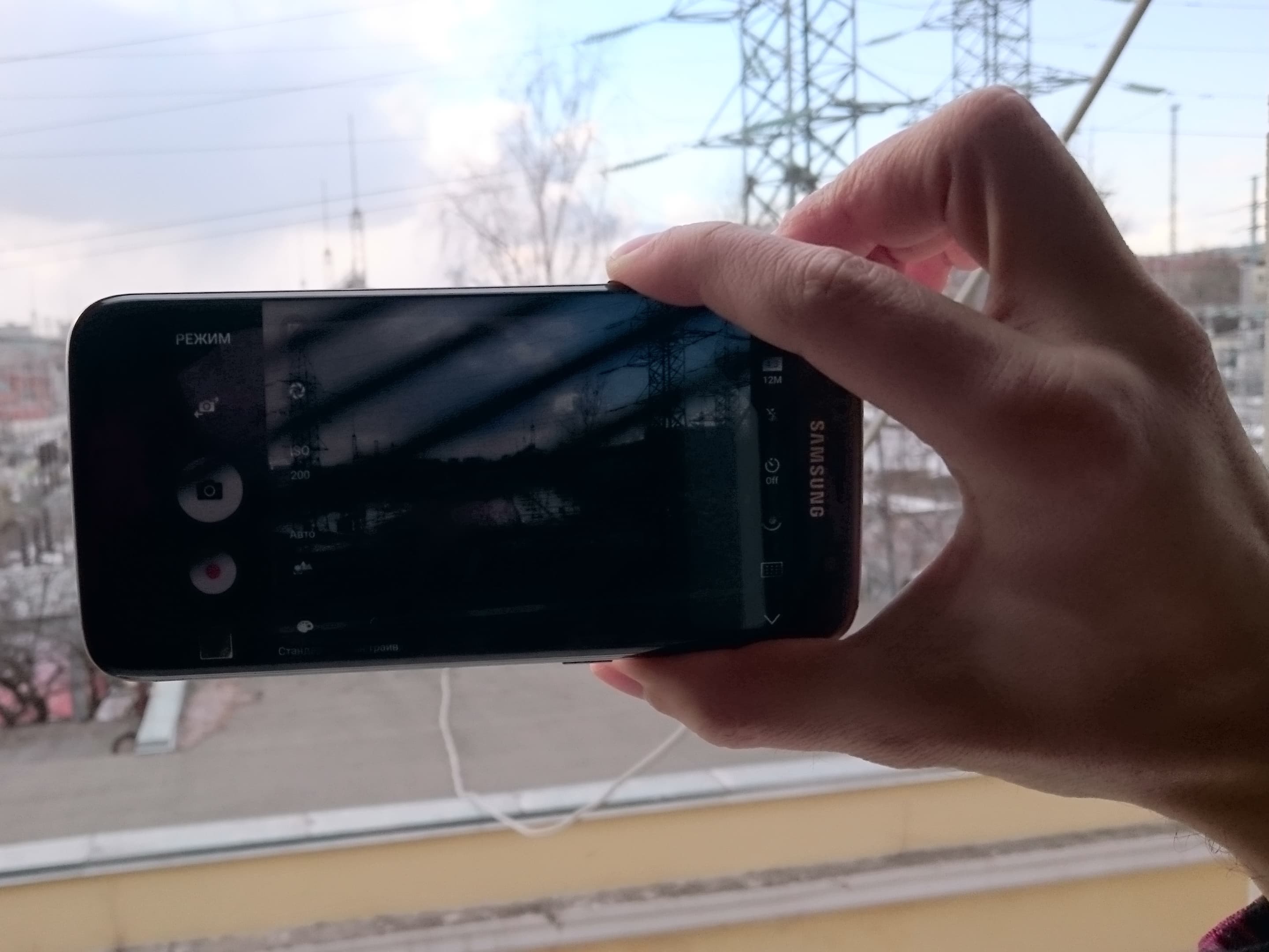 Раз уж речь зашла про удобство, стоит отметить проблемы при съемке одной вполне стандартной рукой. Поскольку в использовании была модификация Edge, приходилось аккуратно обходиться с чувствительными краями. (Вообще, эти «эджи» нередко создают некоторый дискомфорт при использовании, хотя если хочется, то ради дизайна к ним можно привыкнуть.) Если обхватить смартфон так, как это приходится делать с большинством планшетофонов, пальцы зачастую «занимают» сенсор, и кнопка спуска перестает реагировать на нажатия.