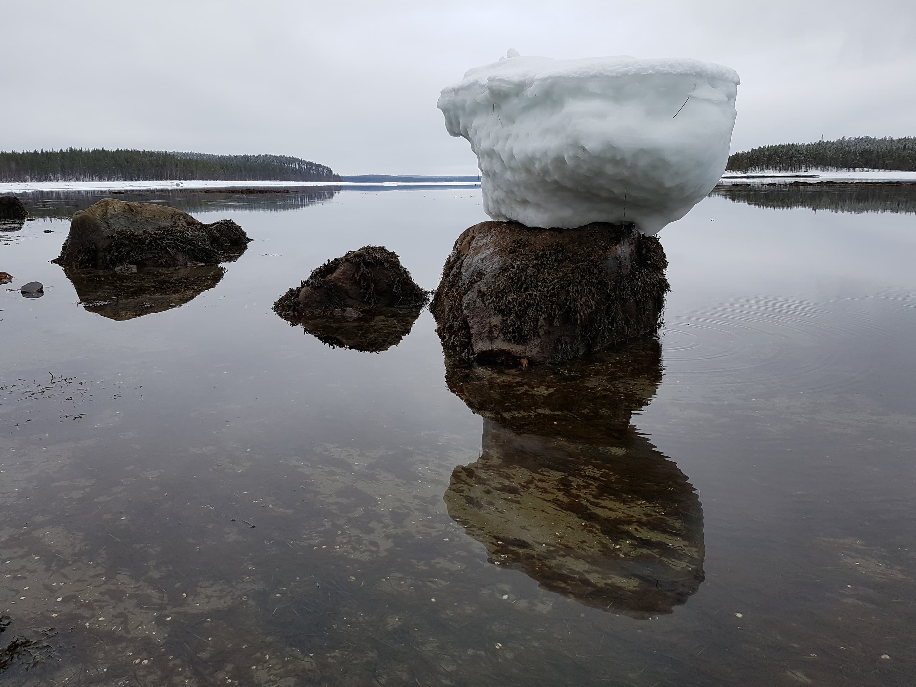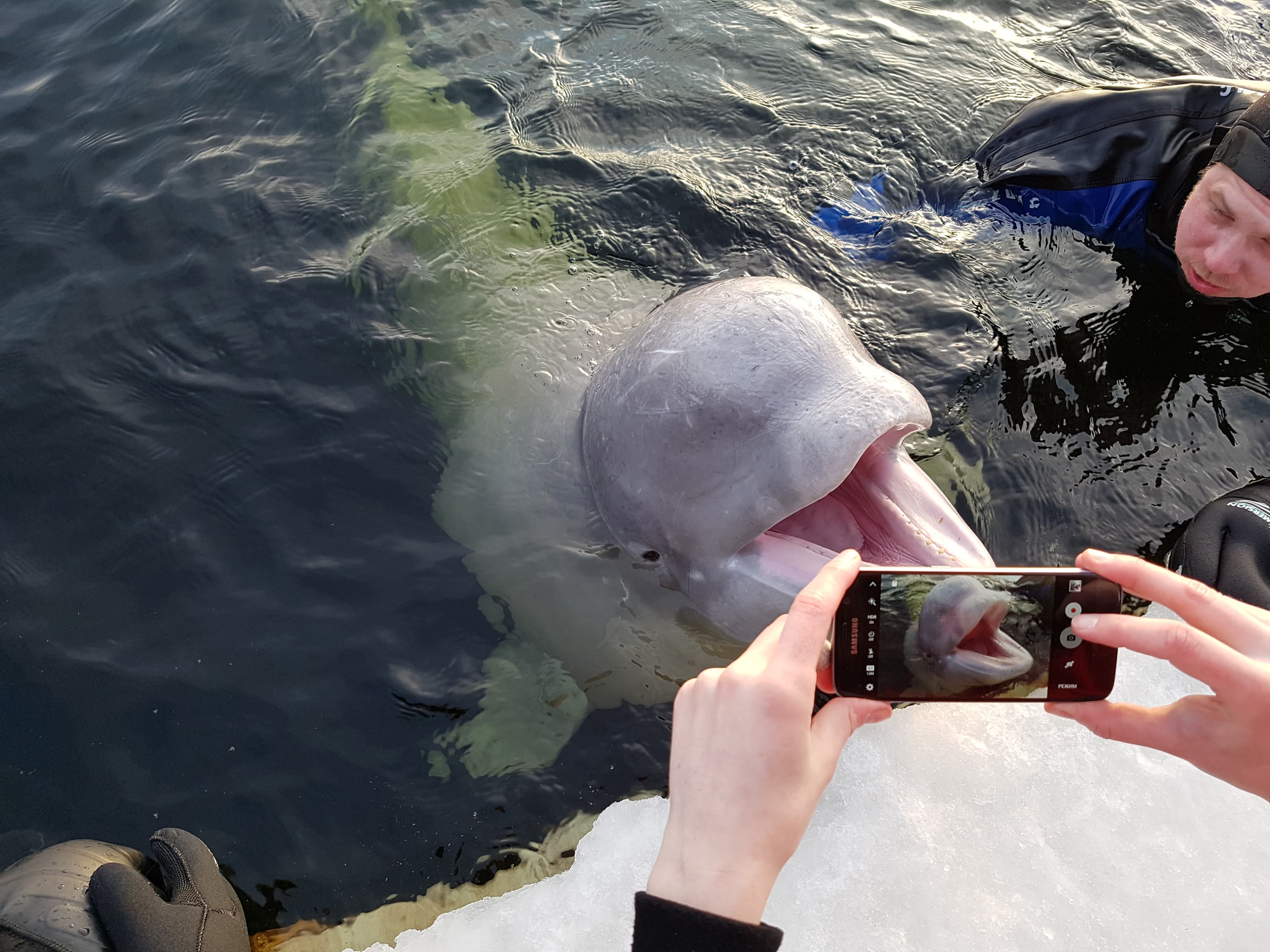 Держа в уме защиту IP68, можно не волноваться за смартфон при падениях в снег или воду. И хотя производитель не предлагает снимать под водой, упускать такой шанс было бы обидно, ведь мы тестировали его не где-нибудь, а на берегу Белого моря (подробнее о наших впечатлениях в целом от использования смартфона в экстремальных условиях будет рассказано далее). Проблем при съемке смартфоном под водой возникло немало: сенсор начинает сходить с ума, кнопки громкости, настроенные на спуск, расположены не очень удобно, ну а вода холодная и соленая. Первая проблема решилась включением дисплея после опускания под воду или же частичным погружением, вторую и третью пришлось перетерпеть, а «опреснять» смартфон после купания в морской воде пришлось в снегу. Все эти действия он перенес достойно.