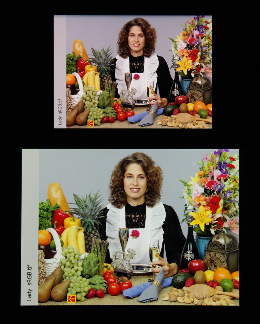 Отметим хорошую равномерность яркости и цветового тона белого поля (за исключением небольшого затемнения и изменения оттенка к загнутым краям).