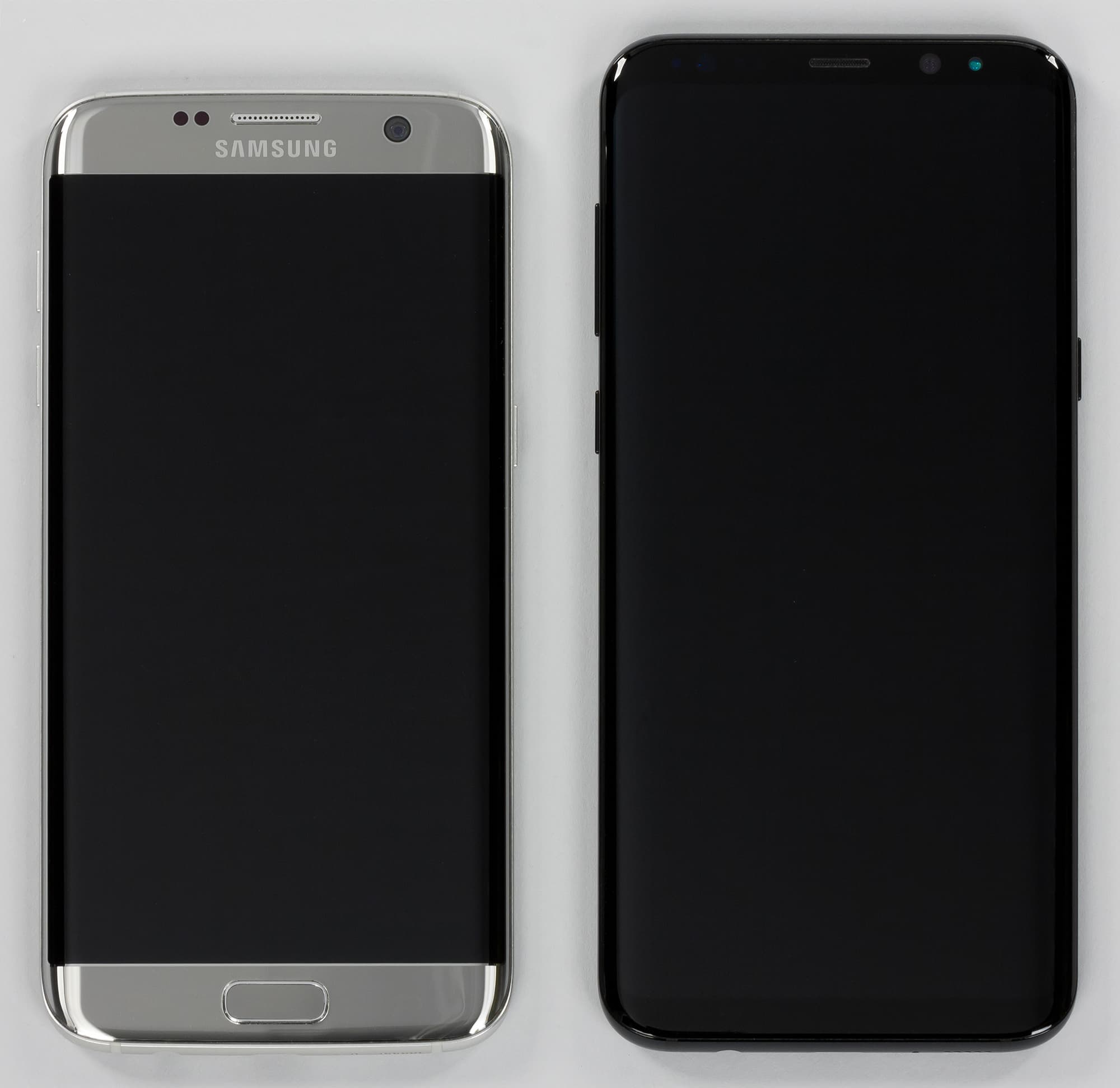 Невооруженным глазом видно, что ширина этих смартфонов практически идентична, но Galaxy S8+ оснащен более вытянутым экраном с нестандартным соотношением сторон. Это позволило отдать бо́льшую площадь поверхности под экран, и в результате Galaxy S8+ с 6,2-дюймовым экраном лежит в ладони так же удобно, как Galaxy S7 Edge c 5,5-дюймовым экраном.