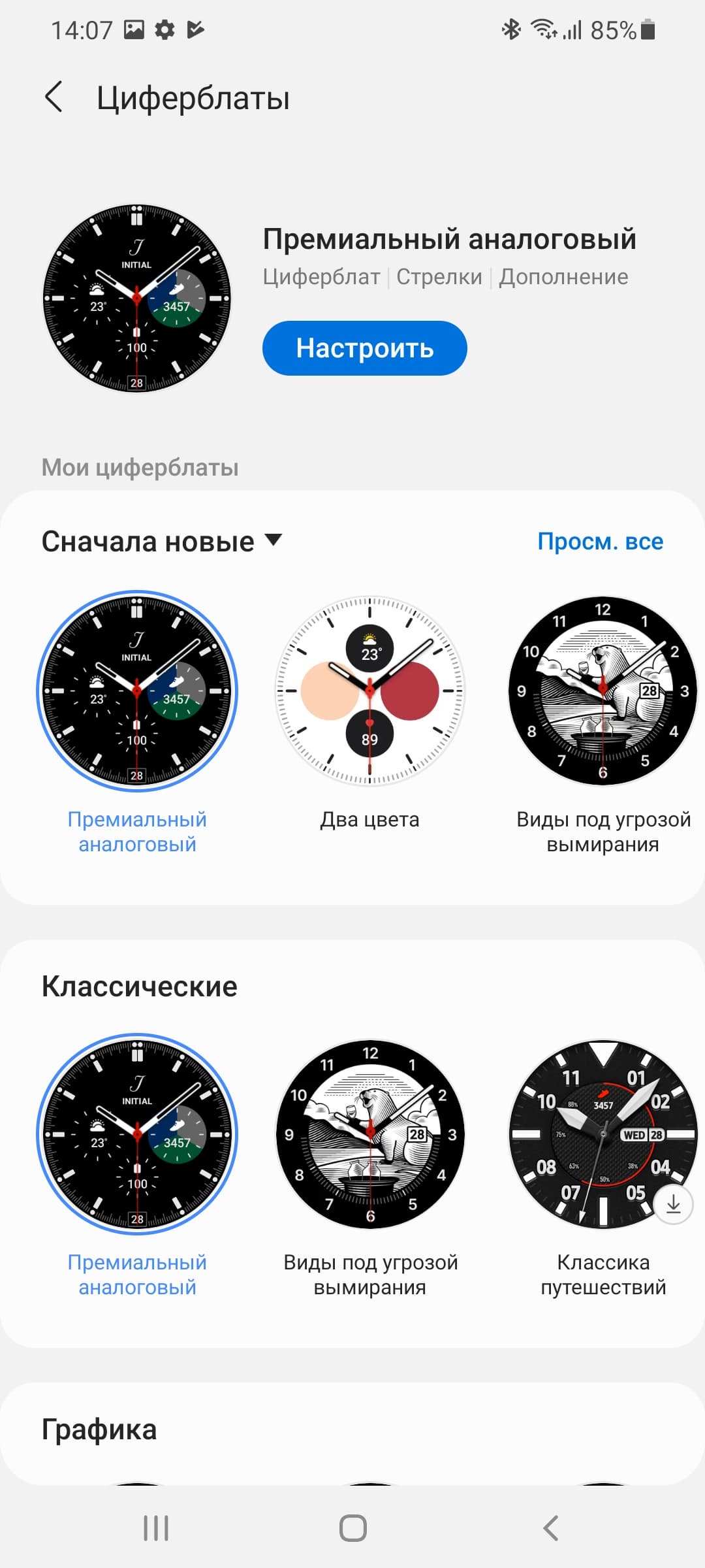 Кстати, что касается циферблатов, их можно не только выбрать из готового набора, но и тонко настроить под себя, указав, какие стрелки и фон вам нравятся и какую информацию вы хотите видеть помимо времени.