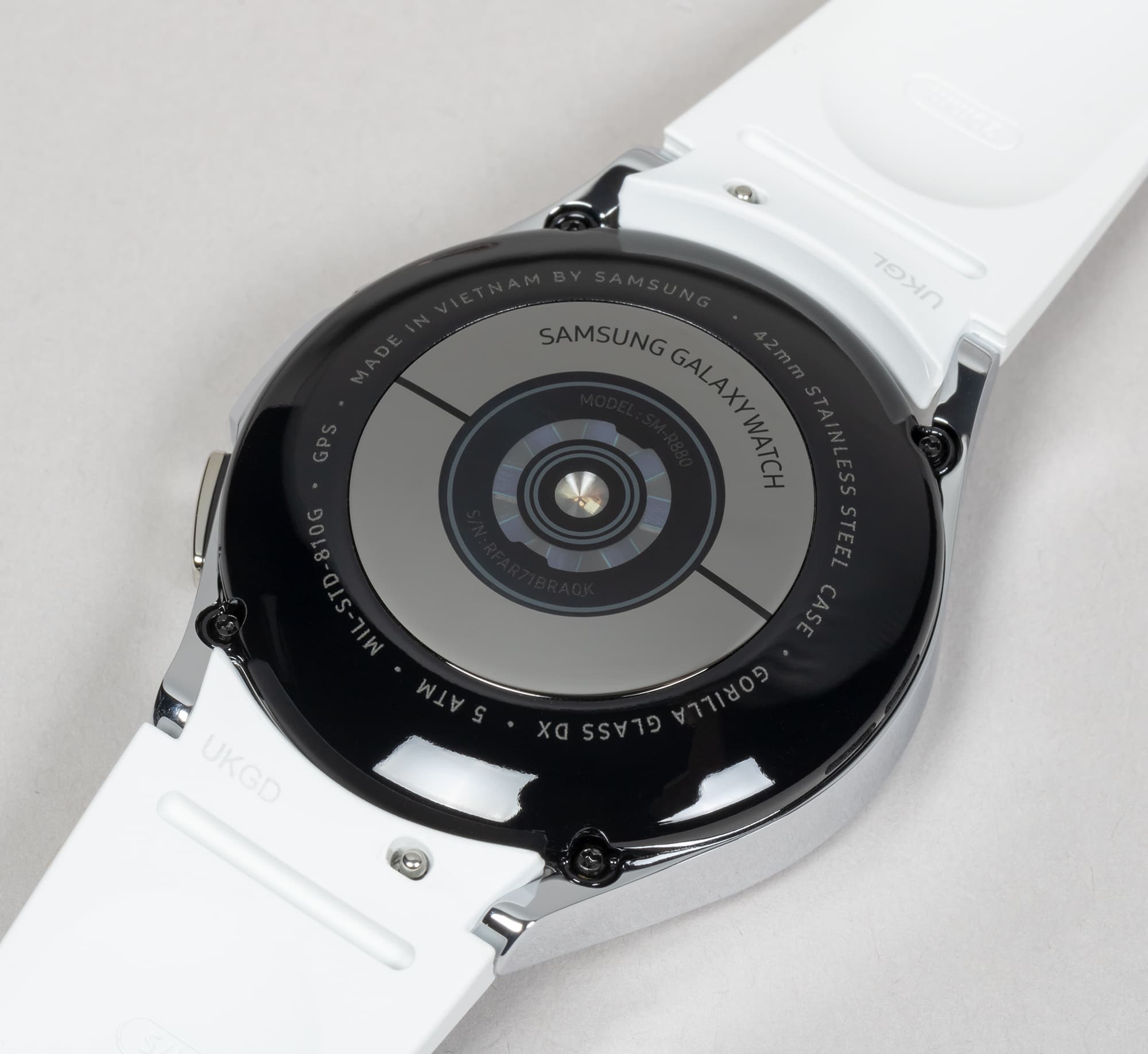 Важно отметить, что во всех вариантах Galaxy Watch4 стальной корпус, а тыльная поверхность, где оптический датчик, из пластика и стекла. В плане удароустойчивости корпус соответствует военному стандарту MIL-STD-810G, а уровень защищенности от влаги — стандартные 5 атм, позволяющие плавать в часах в бассейне и водоемах.