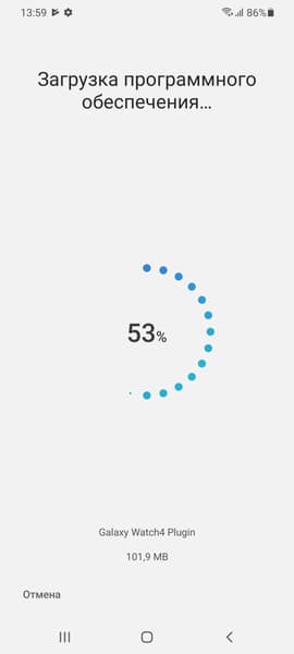 Итак, первое, что необходимо сделать для подключения часов к смартфону — установить Galaxy Wearable из магазина Google Play. После того, как часы и смартфон «увидят» друг друга (а это, кстати, не такой простой процесс — у нас было немало сложностей), приложение начнет загрузку некоего Galaxy Watch4 Plugin. И только когда плагин будет загружен, удастся завершить процесс и увидеть главный экран Galaxy Wearable.