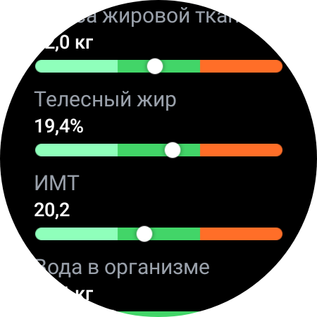 Если вы придете в фитнес-клуб и захотите купить блок тренировок, тренер скорее всего отправит вас делать анализ на состав тела. Разумеется, в клубе это будет стоить недешево. Часы же делают то же самое бесплатно и, видимо, вполне точно. По крайней мере, данные вполне соотносятся с теми, которые автор получал несколько лет назад как раз в фитнес-клубе.