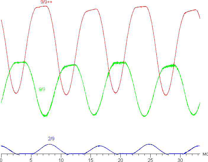 На графиках зависимости яркости (вертикальная ось) от времени (горизонтальная ось) есть значимая модуляция с частотой 120 Гц (9/9++ — это в условиях сильной внешней засветки):