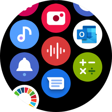 Добавим, что интерфейс изрядно отличается от того, что мы видели в Tizen. Иконки приложений по-прежнему круглые, но расположены они не по внешнему кругу, как раньше, а просто тремя вертикальными рядами. И вот одна странность: среди иконок нет той, которая бы запускала тренировки! Чтобы перейти к тренировкам, вам надо сделать свайп справа налево и открыть отдельный экран (см. скриншот ниже справа).