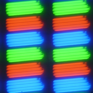 В данном смартфоне используется матрица типа IPS. Микрофотографии демонстрируют типичную для IPS структуру субпикселей: