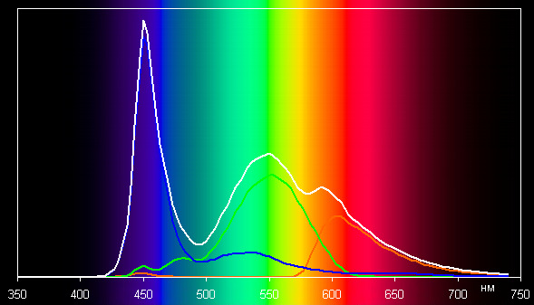 Видимо, светофильтры матрицы подмешивают компоненты друг к другу. Спектры это подтверждают: