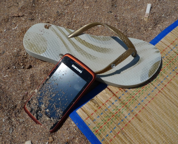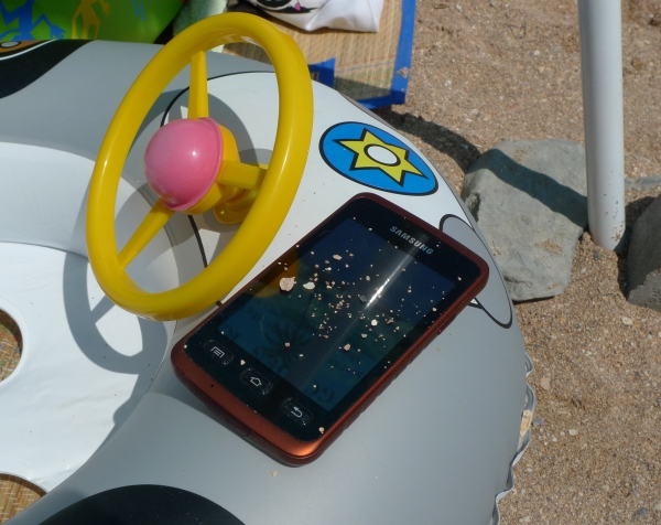 Чтобы закончить с темой защищенности Samsung Galaxy Xcover и перейти к описанию непосредственно возможностей самого аппарата, расскажу, что, уезжая в отпуск к морю, взял с собой пару таких новых «экстремальных» смартфонов (о втором из них — Sony Xperia go — рассказ выйдет в самое ближайшее время) с тем, чтобы проверить их пыле- и влагостойкость в условиях, так сказать, максимально приближенных к реальным. Поэтому и фотографии самого телефона, и ролики и снимки, сделанные с помощью его камеры — все привезено «оттуда».