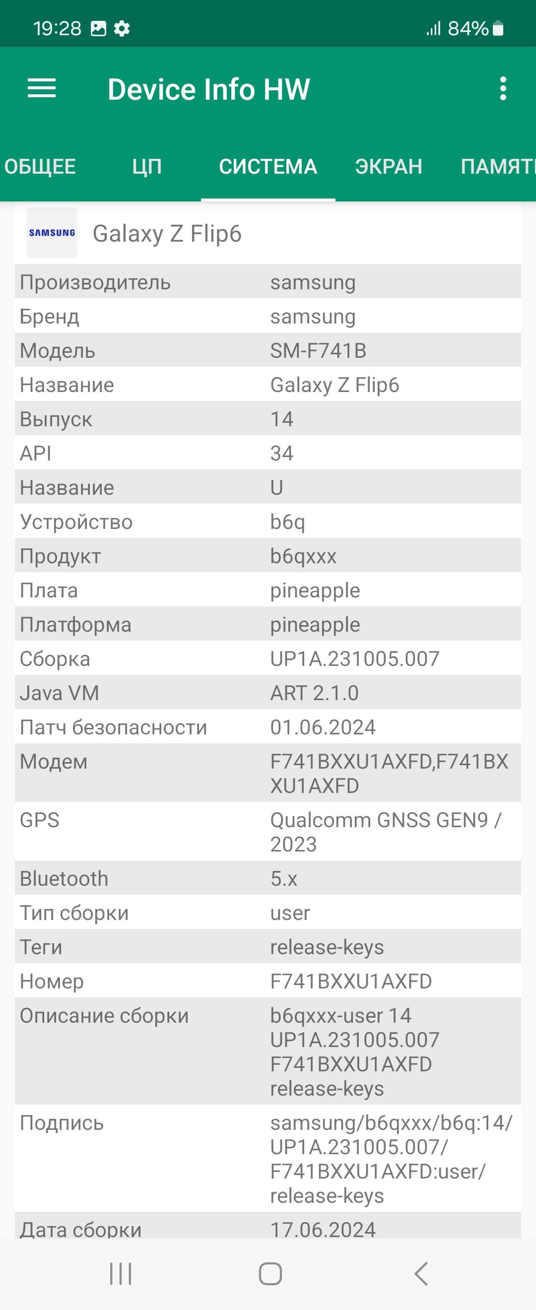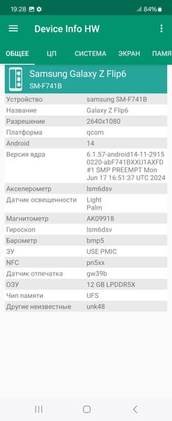 Основные характеристики Samsung Galaxy Z Flip6 (модель SM-F741B)