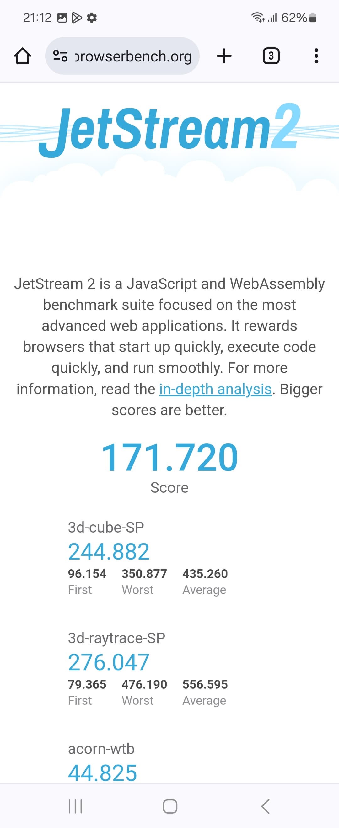 | JetStream (больше — лучше) | 172 | 70 | 60 | 102 | 29 |