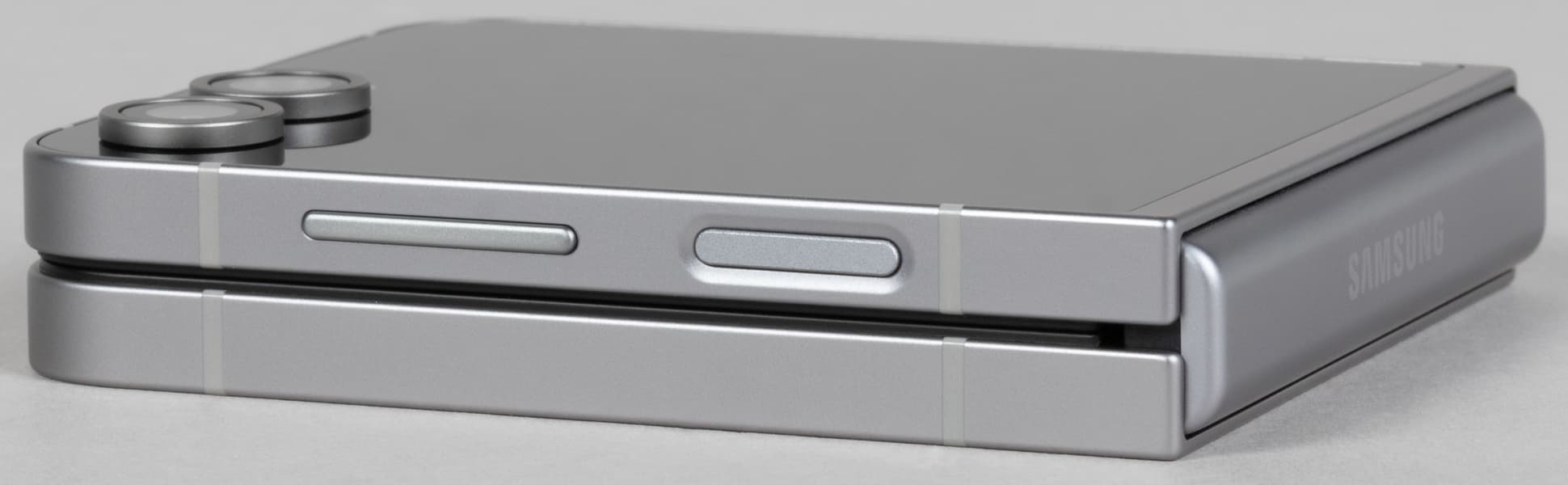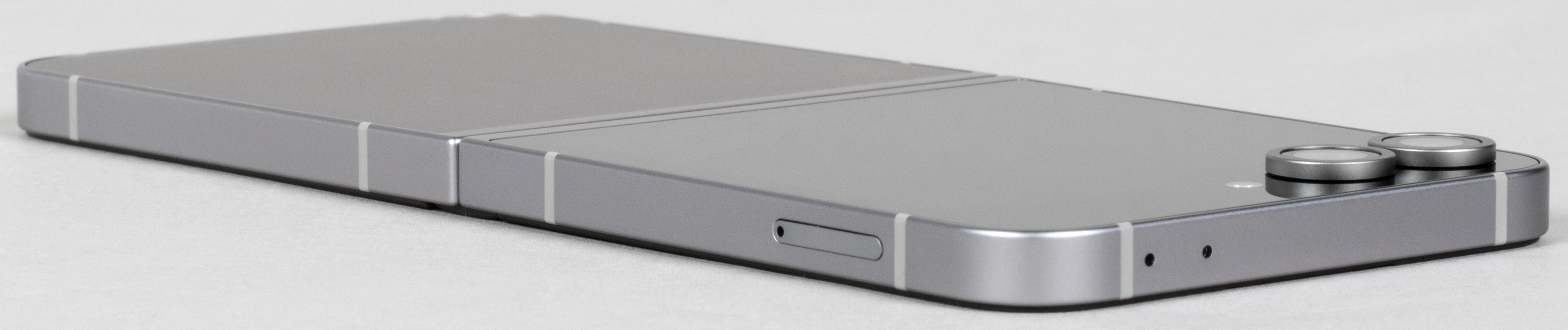 Но есть и минусы: раскладушка-то она раскладушка, но совсем не та, что были в прошлом. Samsung Galaxy Z Flip6 совершенно невозможно изящно расхлопнуть одной рукой, пальцам просто не за что зацепиться. А попытки изловчиться и все-таки сделать это почти наверняка закончатся падением аппарата на пол. В общем, плоские грани без выемок для пальцев заставляют раскрывать аппарат только двумя руками.