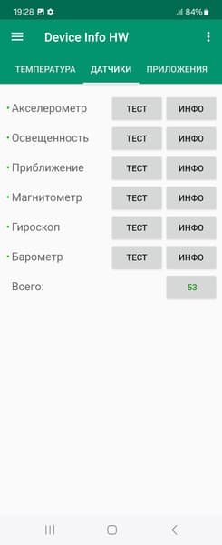 - Датчики приближения и освещения, магнитного поля, акселерометр, гироскоп, барометр