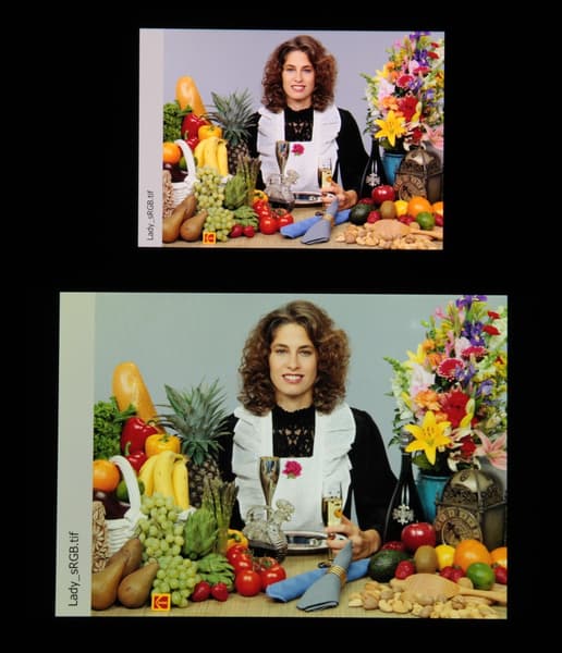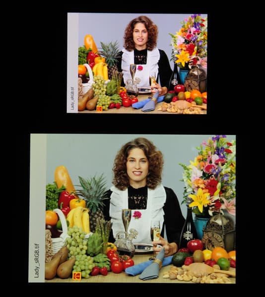 Отметим, что на экранах с широким цветовым охватом (без соответствующей коррекции) цвета́ обычных изображений, оптимизированных для устройств sRGB, выглядят неестественно насыщенными. Отсюда и рекомендация: в большинстве случаев смотреть кино, фотографии и все естественное лучше при выборе профиля Естественные цвета, и только если фотография или видеоматериал сделаны с охватом DCI, принятым в цифровом кинематографе, имеет смысл переключить профиль на Насыщенные цвета.