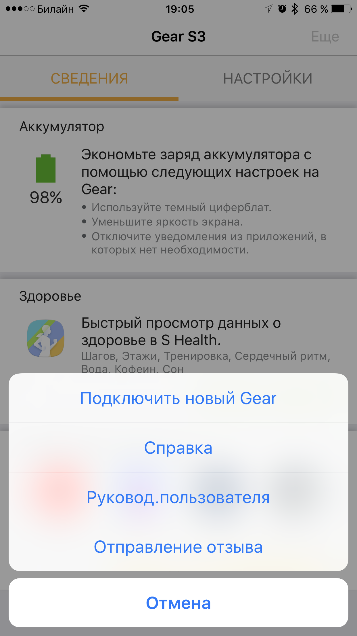 Что касается подключения к iOS-устройствам (речь идет об iPhone, поскольку с другими iOS-устройствами Gear S3, к сожалению, не работают), то здесь для работы с часами вам потребуется только приложение Samsung Gear S. После того, как вы установите его на свой iPhone, вы сможете полноценно управлять часами: устанавливать и удалять приложения, а также отслеживать другую важную информацию.