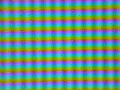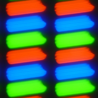 В данном смартфоне используется матрица типа IPS. Микрофотографии демонстрируют типичную для IPS структуру субпикселей: