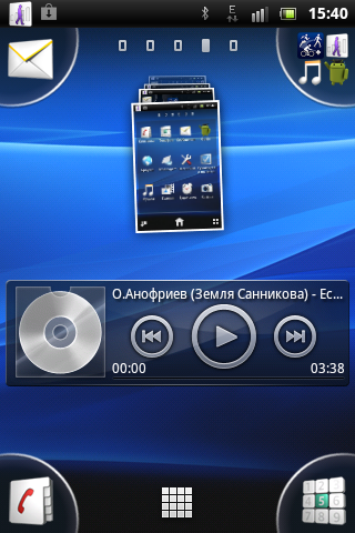 В качестве фирменной оболочки, установленной поверх системы, используется стандартная для устройств Sony Ericsson программа — Timescape UI. Несмотря на то, что она не блещет спецэффектами, как HTC Sense, для коммуникаторов с небольшой диагональю дисплея она идеальна. В этой оболочке наиболее часто используемые приложения можно разместить в четырех областях по углам экрана, что значительно ускоряет работу с коммуникатором и отнимает совсем немного драгоценной площади дисплея.