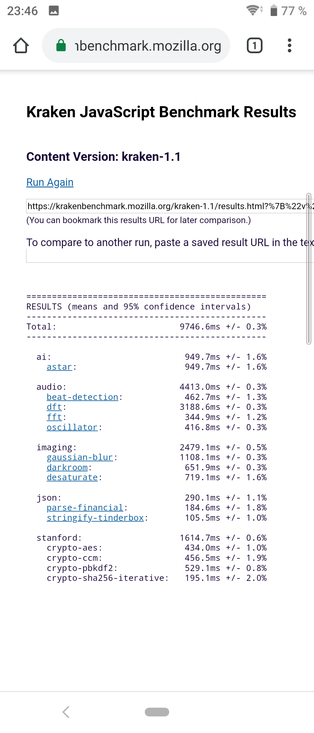 | Mozilla Kraken (мс, меньше — лучше) | 9747 | 4962 | 3945 | 4942 | 4062 |