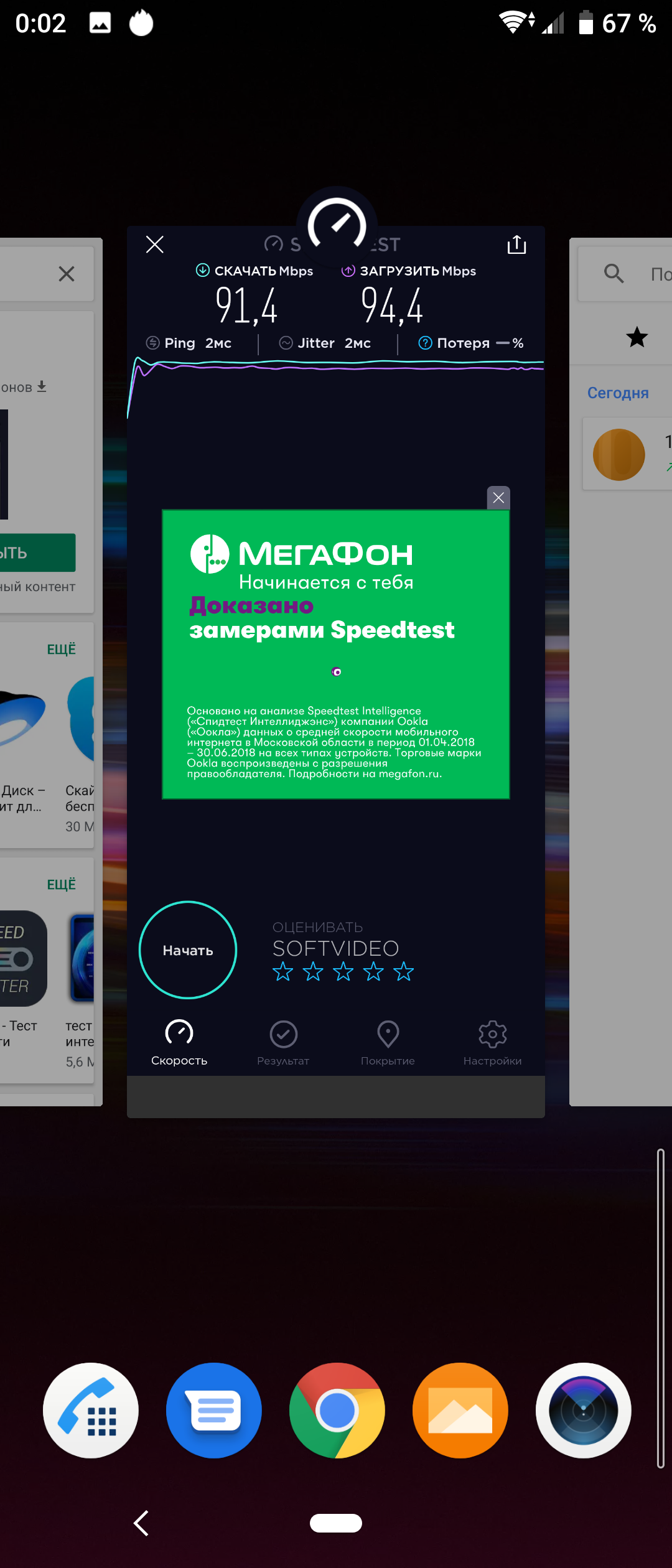 В чипсет смартфона входит модем с поддержкой LTE Cat.12/13, который обеспечивает скорость передачи данных до 600/150 Мбит/с. Претензий к работе в беспроводных сетях нет: в пределах городской черты московского региона аппарат ведет себя уверенно, держит сеть 4G, быстро восстанавливает связь после вынужденного обрыва.