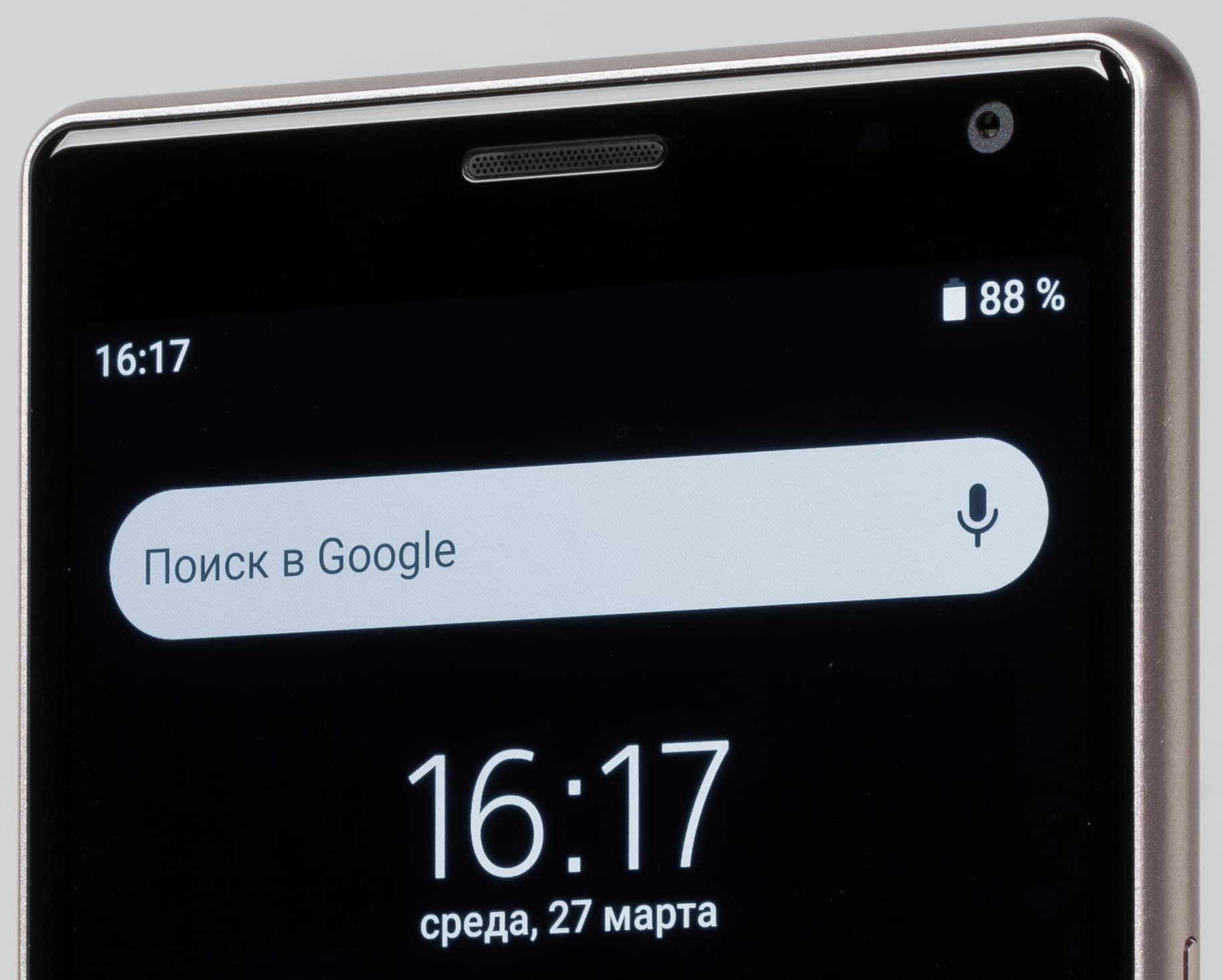 При ручном управлении яркостью и при выводе белого поля во весь экран ее долговременное максимальное значение составило порядка 530 кд/м², а минимальное — 5 кд/м². Максимальное значение очень высокое, и, учитывая отличные антибликовые свойства, при ярком дневном свете изображение на экране должно быть хорошо различимым. В полной темноте яркость можно понизить до комфортного уровня. Работает автоматическая регулировка яркости по датчику освещенности (он расположен слева от прорези фронтального громкоговорителя). В автоматическом режиме при изменении внешних условий освещенности яркость экрана как повышается, так и понижается. Работа этой функции зависит от положения ползунка регулировки яркости: им пользователь может попытаться выставить желаемый уровень яркости в текущих условиях. Если оставить все по умолчанию, то в полной темноте функция автояркости уменьшает яркость до 5 кд/м² (темновато), в условиях освещенного искусственным светом офиса (примерно 550 лк) устанавливает на 180 кд/м² (нормально), в очень ярком окружении (соответствует освещению ясным днем вне помещения, но без прямого солнечного света — 20000 лк или немного больше) повышает до 530 кд/м² (до максимума, так и нужно). Уровень яркости подсветки зависит от положения ползунка в темноте и в средних условиях, а в очень ярком окружении всегда устанавливается максимум. Результат нас не совсем устроил, поэтому в полной темноте мы чуть увеличили яркость, получив в итоге для трех условий, указанных выше, следующие значения: 10, 180 и 530 кд/м² (идеальное сочетание). Получается, что функция автоподстройки яркости работает адекватно и позволяет пользователю настраивать свою работу под индивидуальные требования. Только на очень низком уровне яркости появляется значимая модуляции подсветки, но ее частота высокая, порядка 2,3 кГц, поэтому даже в этом случае видимое мерцание экрана отсутствует.