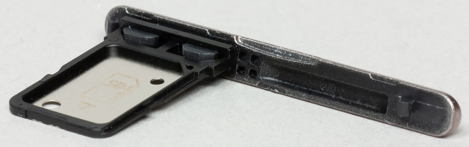 Второй лоток предназначен исключительно для одной SIM-карты формата Nano-SIM. Горячей замены карт нет, все смартфоны Sony самостоятельно перезагружаются, стоит только открыть крышку разъема. То есть для перезагрузки даже не нужно вынимать карты, достаточно лишь приоткрыть крышку.