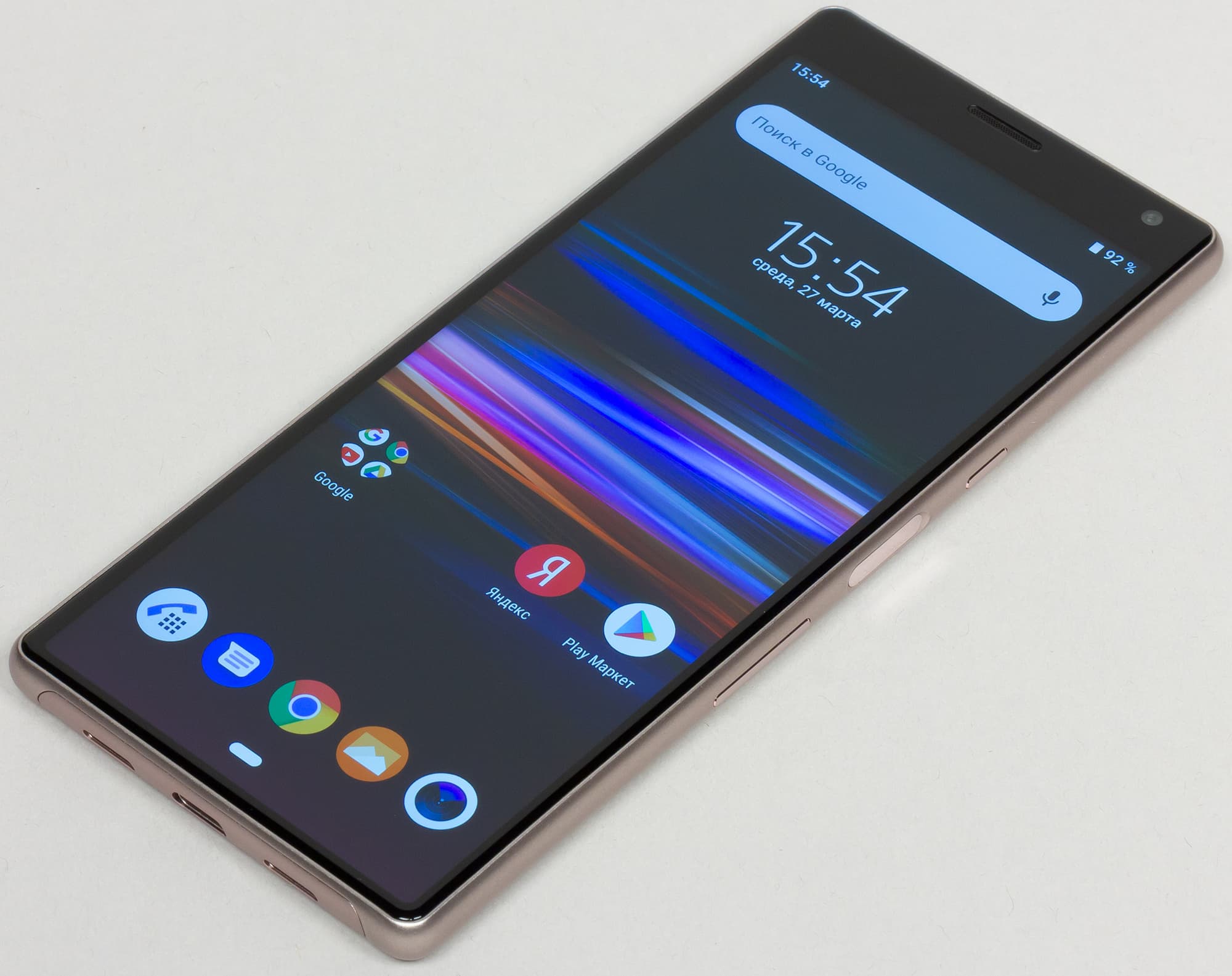 Цвета у Sony Xperia 10 перенасыщенные. Как показали тесты, причина этого заключается в основном в увеличенном цветовом контрасте. Цветовой баланс у экранов на фотографии выше немного различается.