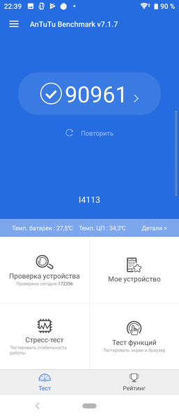 | AnTuTu (v7.x) (больше — лучше) | 90961 | 96889 | 143400 | 102724 | 122309 |