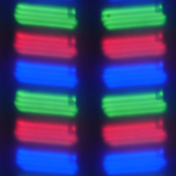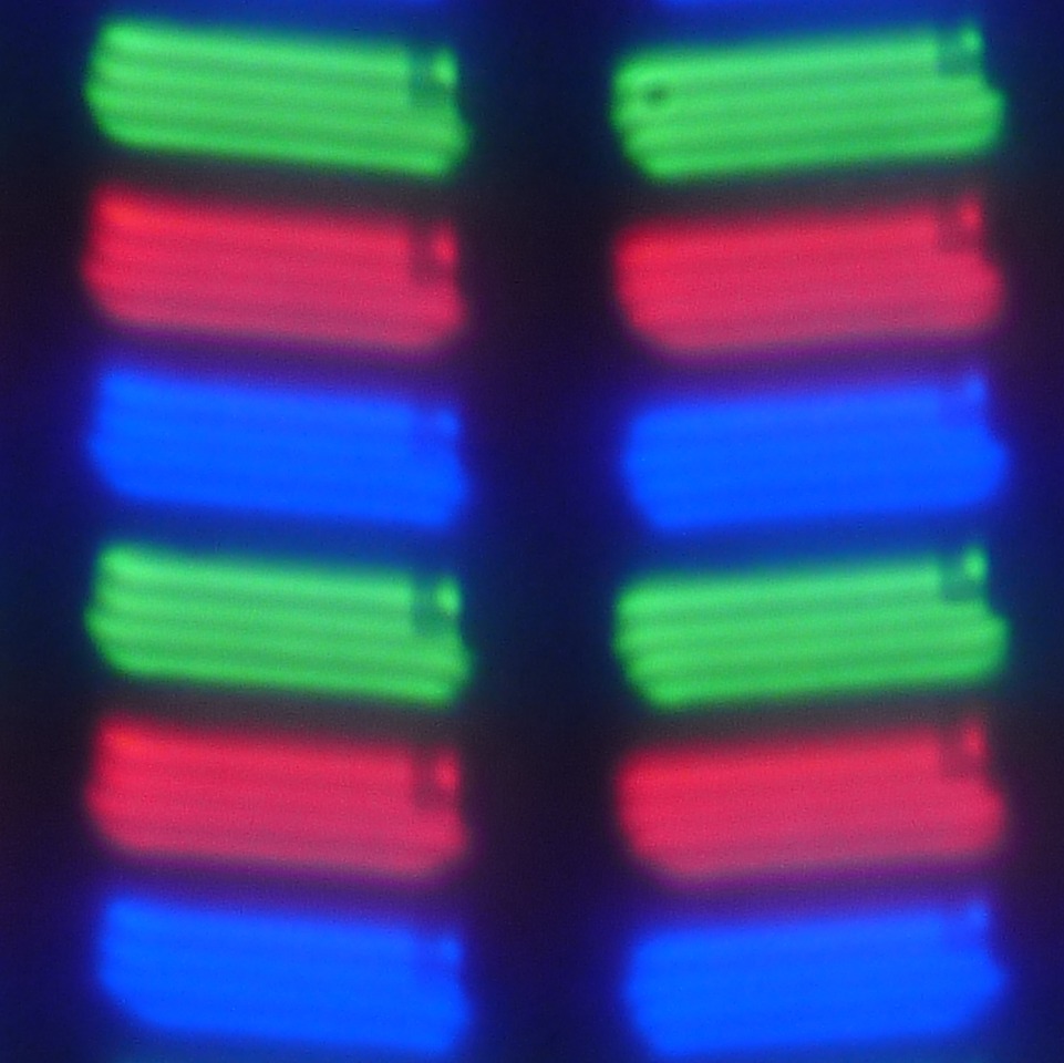 В данном экране используется матрица типа IPS. Микрофотографии демонстрируют типичную для IPS структуру субпикселей: