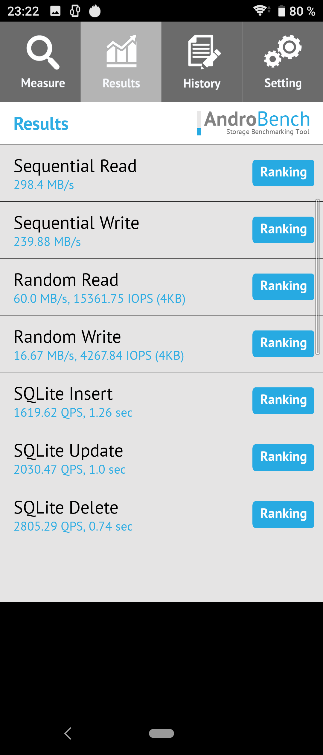 Результаты теста AndroBench на скорость работы с памятью:
