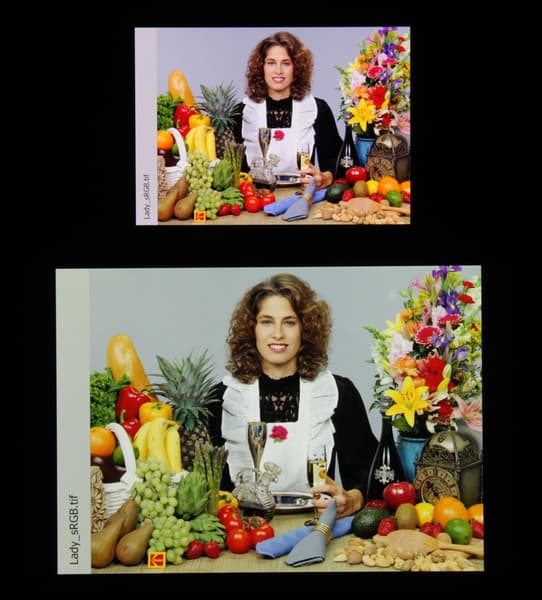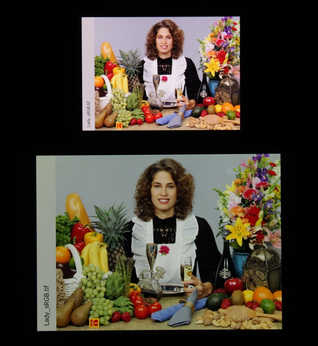 Отметим, что на экранах с широким цветовым охватом без соответствующей коррекции цвета обычных изображений, оптимизированных для устройств sRGB, выглядят неестественно насыщенными. Отсюда и рекомендация: в большинстве случаев смотреть кино, фотографии и все естественное лучше при выборе профиля Режим создателя и в приложении, в котором цвета корректируются. Профиль Стандартный режим можно использовать в качестве компромиссного варианта, в котором изображения с охватом sRGB выводятся немного перенасыщенными, но зато во всех программах одинаково.