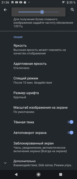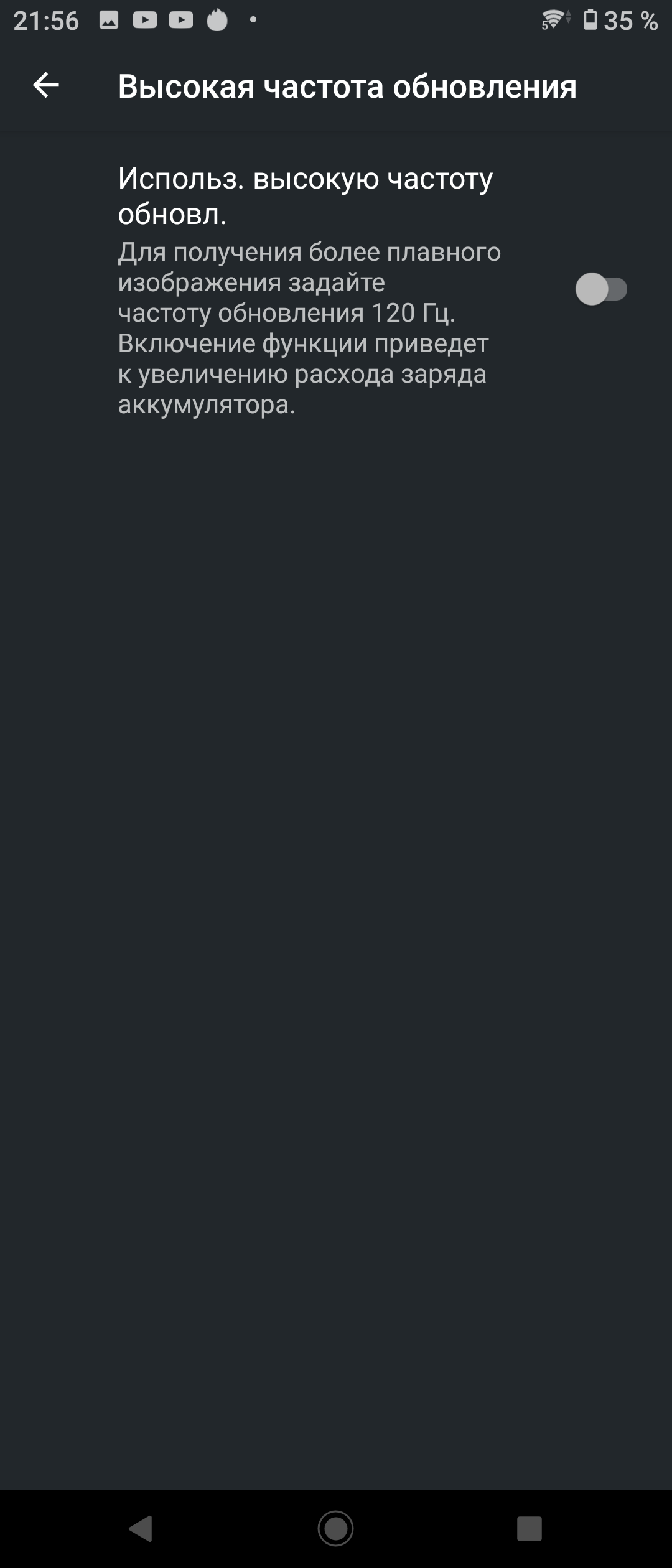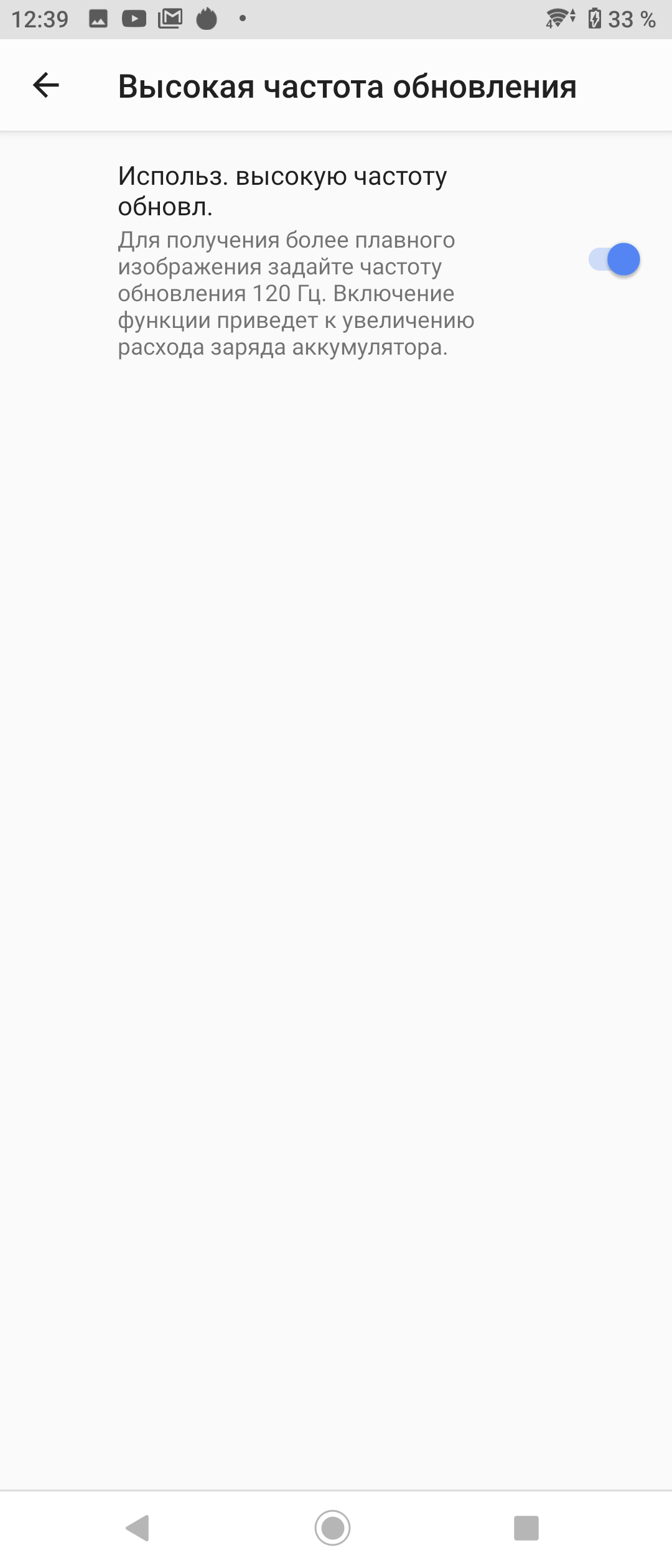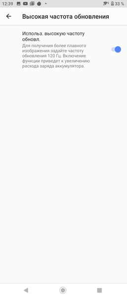 В настройках экрана можно включить режим с повышенной до 120 Гц частотой обновления: