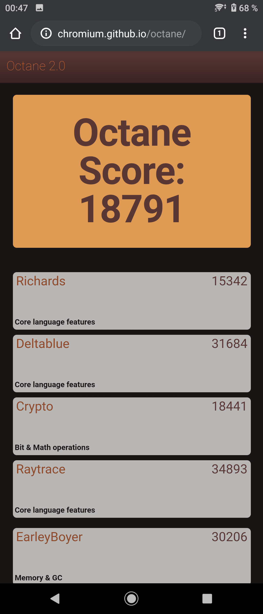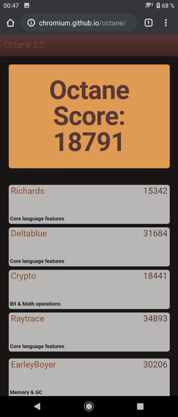 | Google Octane 2 (больше — лучше) | 18791 | 17606 | 17248 | 8987 | 22423 |