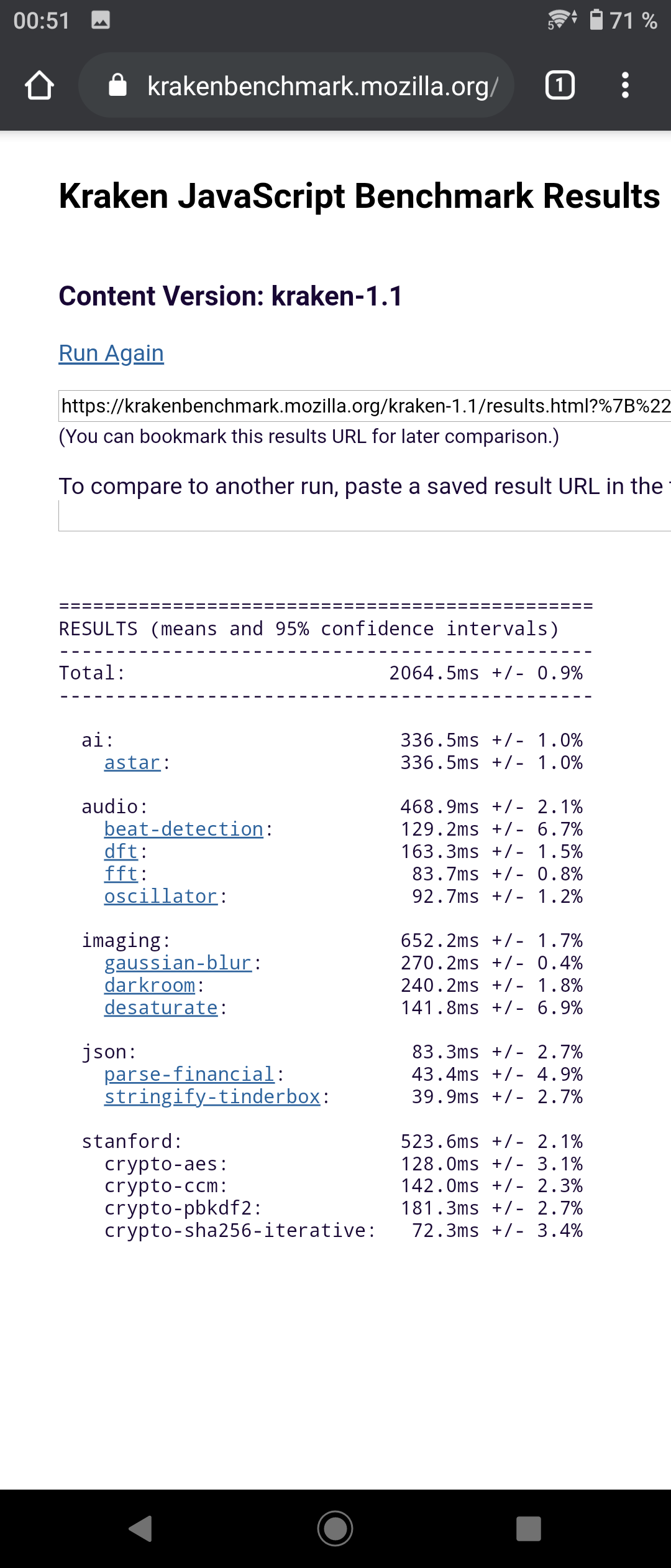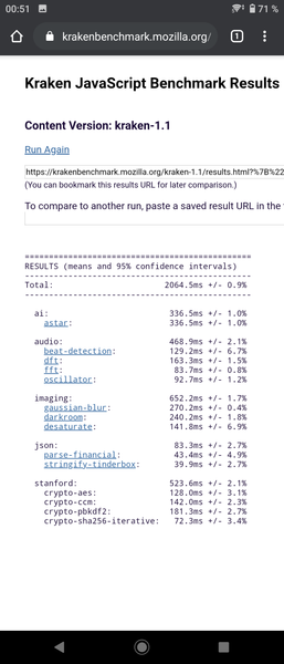 | Mozilla Kraken (мс, меньше — лучше) | 2065 | 2563 | 2679 | 4080 | 2267 |