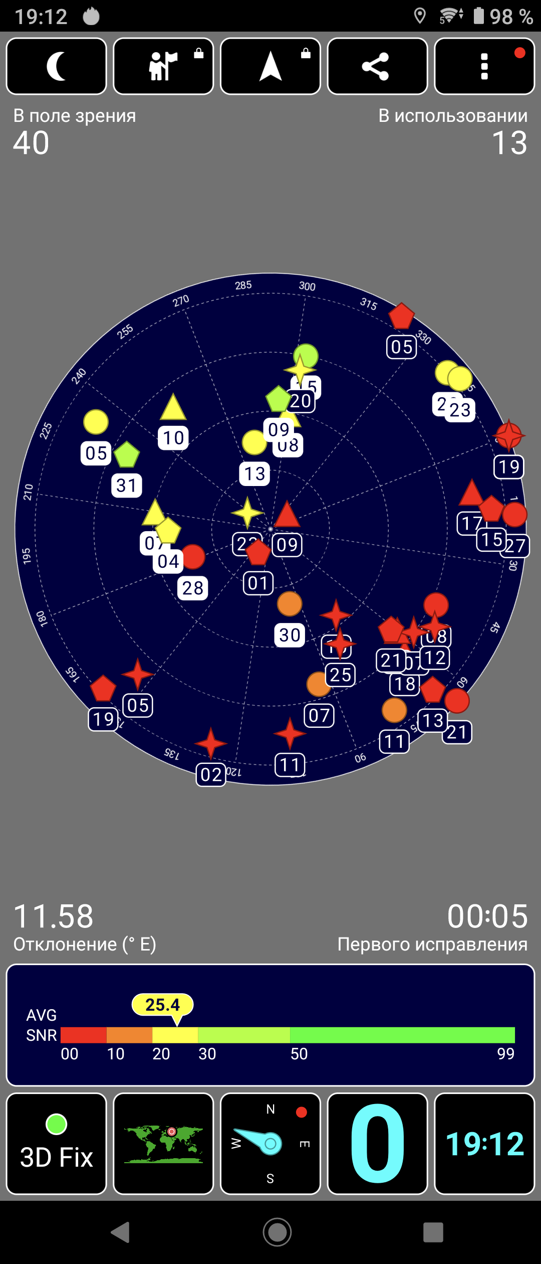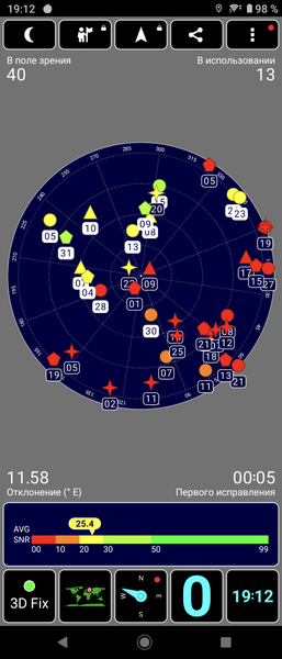 Навигационный модуль работает с GPS (с A-GPS), с отечественной Глонасс, с китайской Beidou и с европейской Galileo. Первые спутники даже при холодном старте обнаруживаются быстро, точность позиционирования не вызывает претензий — впрочем, в последнее время с этим проблем нет даже в бюджетных моделях, новые SoC справляются с работой хорошо.