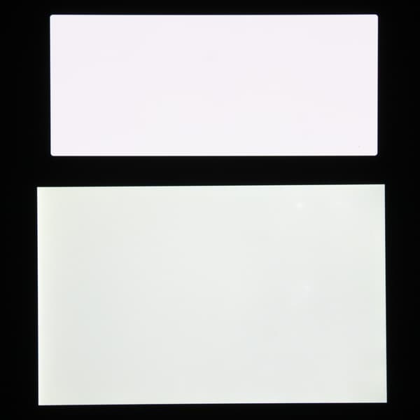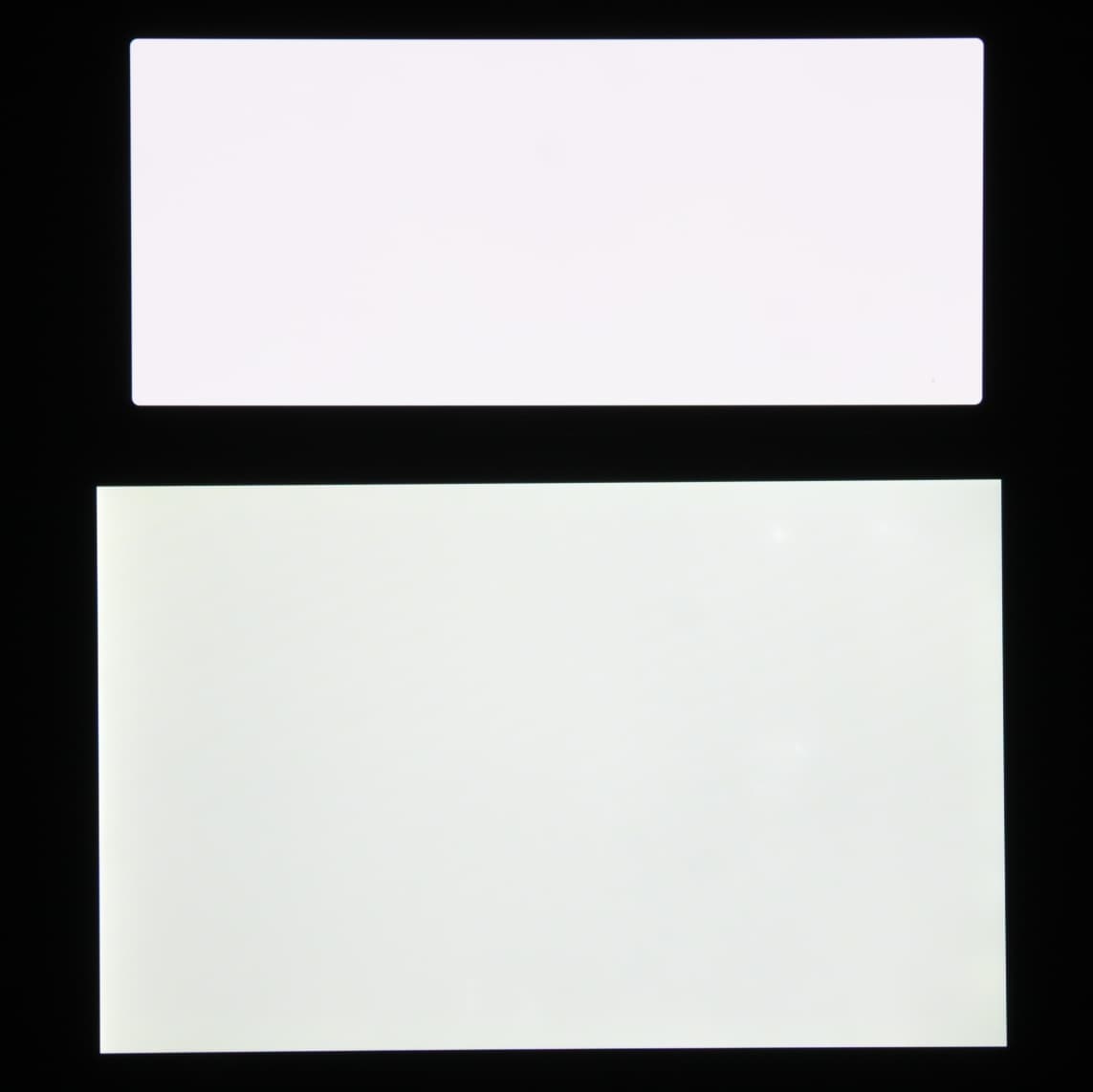 Экран характеризуется великолепными углами обзора. Правда, белый цвет при отклонении даже на небольшие углы приобретает легкий синеватый оттенок, но черный цвет остается просто черным под любыми углами. Он настолько черный, что параметр контрастности в данном случае неприменим. Для сравнения приведем фотографии, на которых на экраны Sony Xperia 5 II и Nexus 7 выведены одинаковые изображения, при этом яркость экранов изначально установлена примерно на 200 кд/м², а цветовой баланс на фотоаппарате принудительно переключен на 6500 К.