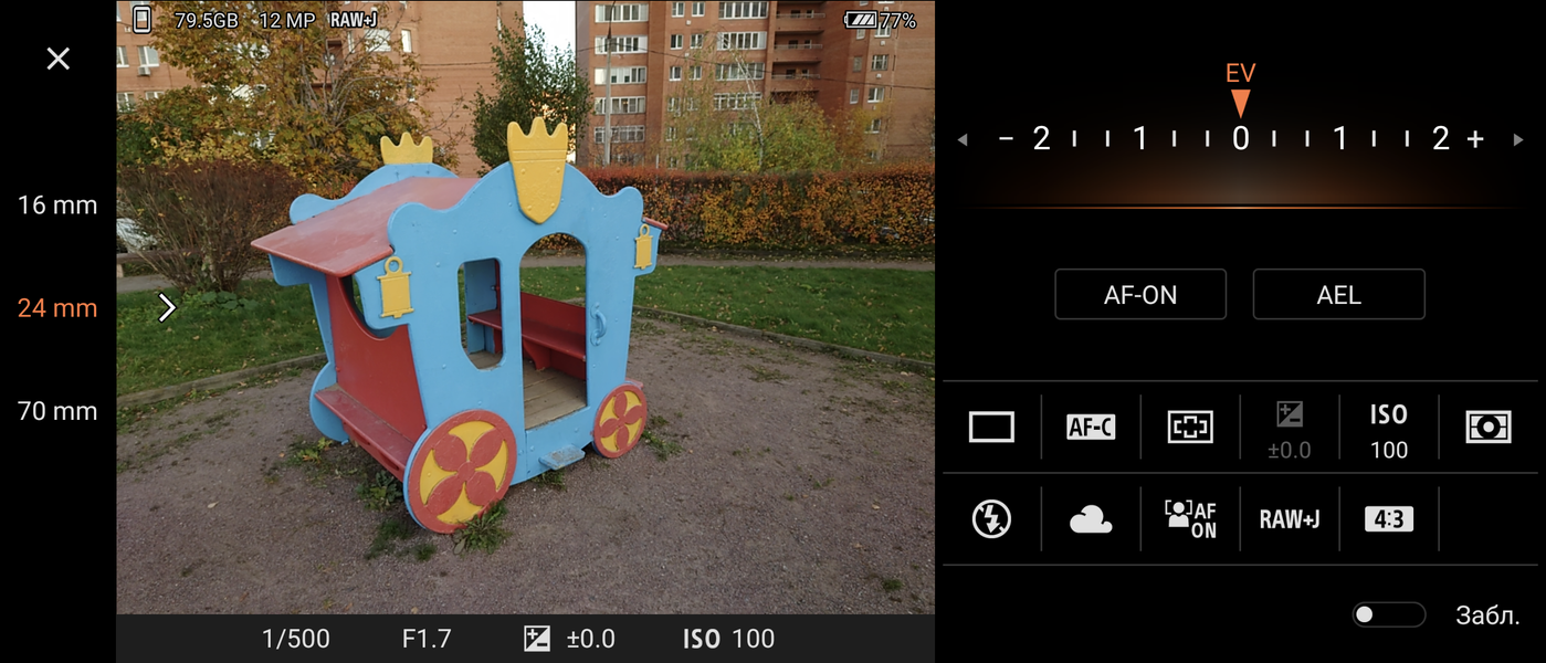 Интерфейс управления камерой привычный и интуитивно понятный, хотя возможностей и настроек здесь больше, чем у большинства смартфонов: есть и следящий автофокус по глазам людей и животных, и серийная съемка, и цветовые эффекты, и бьютификатор, и многое другое. Можно сохранять снимки в JPEG и RAW (прикладываем архив с несколькими снимками в DNG).