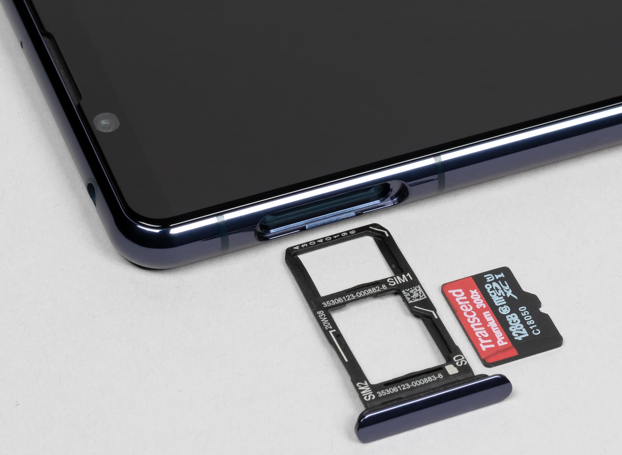 Разъем для карточек здесь совмещенный: рассчитан на две карты Nano-SIM, одну из которых можно заменить на карту памяти microSD объемом до 1 ТБ. Выдвинуть лоток с карточками можно без применения скрепки. Наконец-то Sony реализовала возможность горячей замены карточек: все прежние смартфоны японцев при любых манипуляциях с лотком автоматически перезагружались.