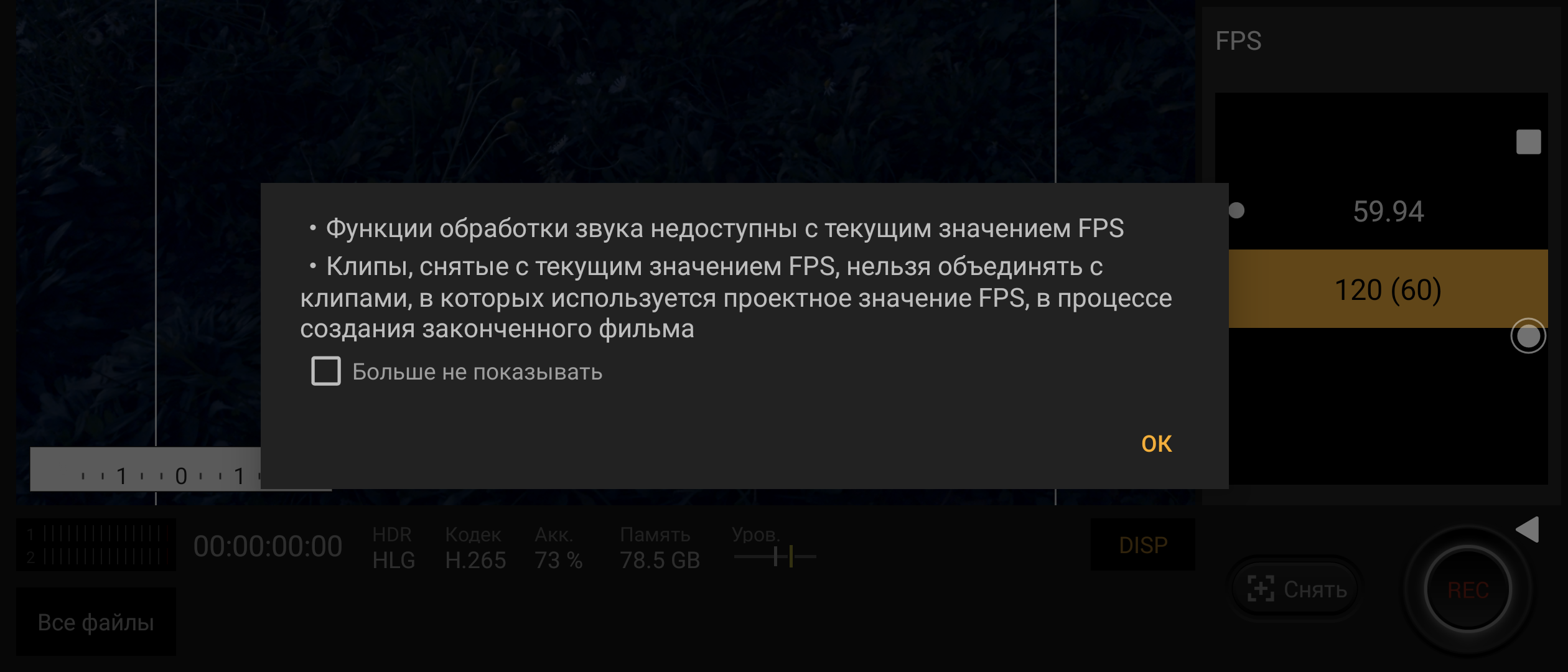 Помимо типичных ручных настроек (коррекция экспозиции, ISO, выдержка, выбор способа фокусировки, выбор фокусного расстояния и пр.), можно найти дополнительные режимы, которых нет в простом интерфейсе. Появляется, например, возможность снимать видео в 4К при 60 fps, а также 4K HDR с частотой 120 fps, причем в 10-битном формате со сжатием в HEVC. Потом такое видео отображается замедленным и требует цветокоррекции.