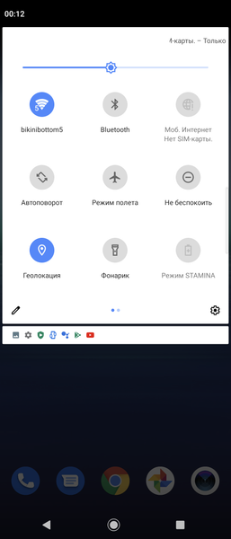 При ручном управлении яркостью и при выводе белого поля в режиме SDR во весь экран максимальное значение яркости составило около 320 кд/м², а на очень ярком свету и в случае автоматической регулировки оно повышается до 515 кд/м², при этом в режиме HDR яркость может достигать порядка 570 кд/м². В итоге, учитывая отличные антибликовые свойства, читаемость днем на солнце должна быть на хорошем уровне. Минимальное значение яркости — 2,1 кд/м², поэтому в полной темноте яркость можно понизить до комфортного значения. В наличии автоматическая регулировка яркости по датчику освещенности (он находится на фронтальной панели близко к верхнему краю правее решетки фронтального громкоговорителя). В автоматическом режиме при изменении внешних условий освещенности яркость экрана как повышается, так и понижается. Работа этой функции зависит от положения ползунка регулировки яркости: им пользователь может попытаться выставить желаемый уровень яркости в текущих условиях. Если оставить все по умолчанию, то в полной темноте функция автояркости уменьшает яркость до 4 кд/м² (темновато), в условиях освещенного искусственным светом офиса (примерно 550 лк) устанавливает на 135 кд/м² (нормально), а условно под прямыми лучами солнца повышает до 515 кд/м² (достаточно). Результат нас не совсем устроил, поэтому в полной темноте мы чуть увеличили яркость, получив в итоге для трех условий, указанных выше, следующие значения: 10, 135 и 515 кд/м² (идеальное сочетание). Получается, что функция автоподстройки яркости работает адекватно и позволяет пользователю настраивать свою работу под индивидуальные требования.