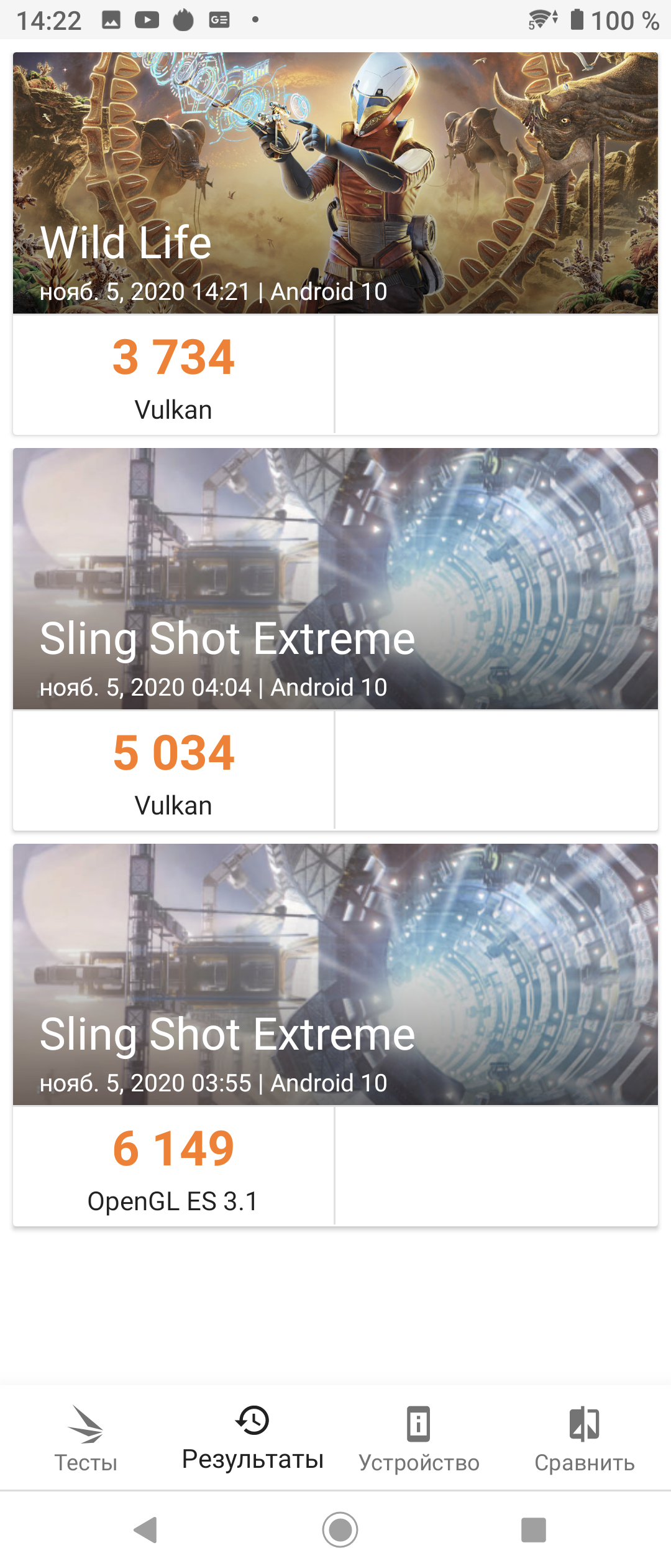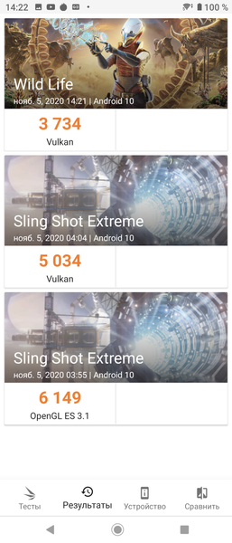 | 3DMark Sling Shot Ex Vulkan (больше — лучше) | 5034 | 5164 | 2341 | 4756 | 2763 |