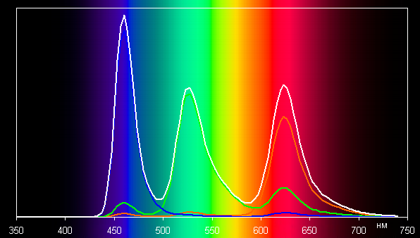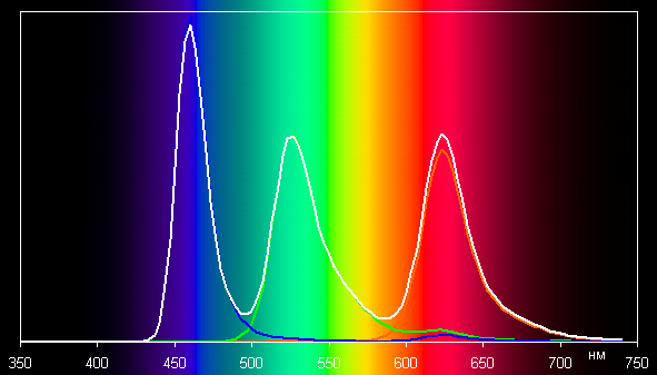 В случае вывода в широком цветовом охвате спектры компонент очень хорошо разделены: