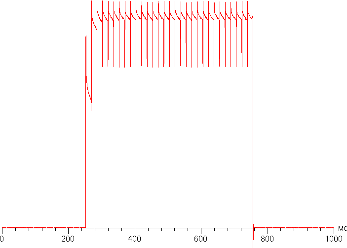 Переключение состояния элементов матрицы выполняется практически мгновенно, но на фронте включения может присутствовать ступенька шириной примерно 17 мс (что соответствует частоте обновления экрана примерно в 60 Гц) или 8,3 мс (120 Гц). Например, так выглядит зависимость яркости от времени при переходе от черного к белому и обратно (частота обновления экрана 60 Гц):