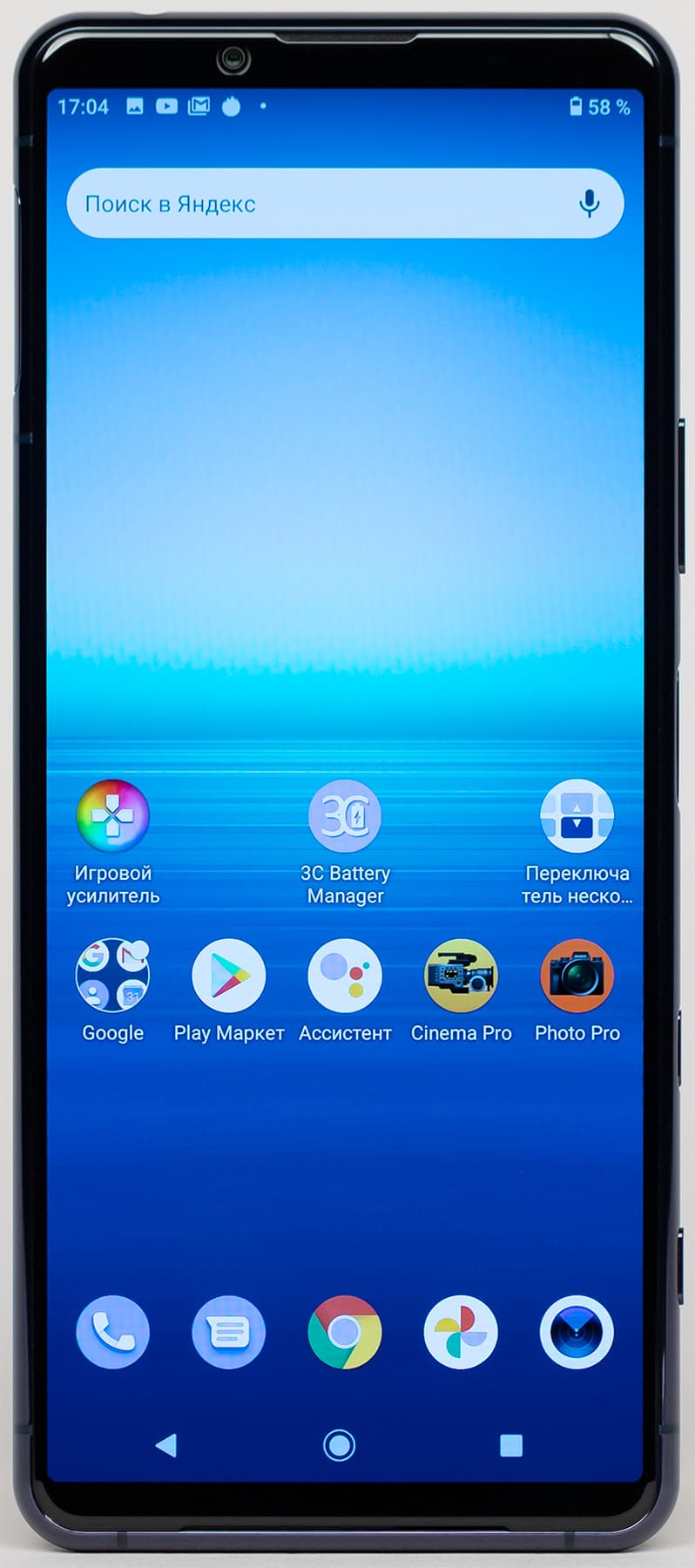 Экран у Sony Xperia 5 II заметно темнее (яркость по фотографиям 99 против 109 у Nexus 7) и не имеет выраженного оттенка. Двоение отраженных объектов в экране Sony Xperia 5 II очень слабое, это свидетельствует о том, что между слоями экрана нет воздушного промежутка. За счет меньшего числа границ (типа стекло/воздух) с сильно различающимися коэффициентами преломления такие экраны лучше смотрятся в условиях интенсивной внешней засветки, но вот их ремонт в случае потрескавшегося внешнего стекла обходится гораздо дороже, так как менять приходится экран целиком. На внешней поверхности экрана есть специальное олеофобное (жироотталкивающее) покрытие (по эффективности гораздо лучше, чем у Nexus 7), поэтому следы от пальцев удаляются легче, а появляются с меньшей скоростью, чем в случае обычного стекла.