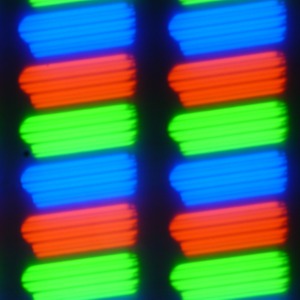 В данном смартфоне используется матрица типа IPS. Микрофотографии демонстрируют типичную для IPS структуру субпикселей: