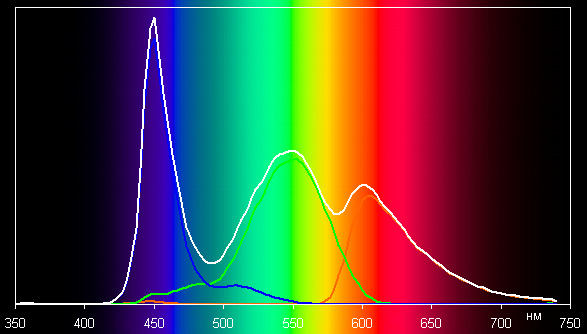В итоге мы на белом существенно уменьшили ΔE и чуть больше приблизили точку белого к 6500 К. Однако при этом увеличился разброс параметров, что плохо (видимо, коррекция производится программным «цифровым» способом), также существенно уменьшилась яркость изображения. Результат продемонстрирован на фотографии ниже: