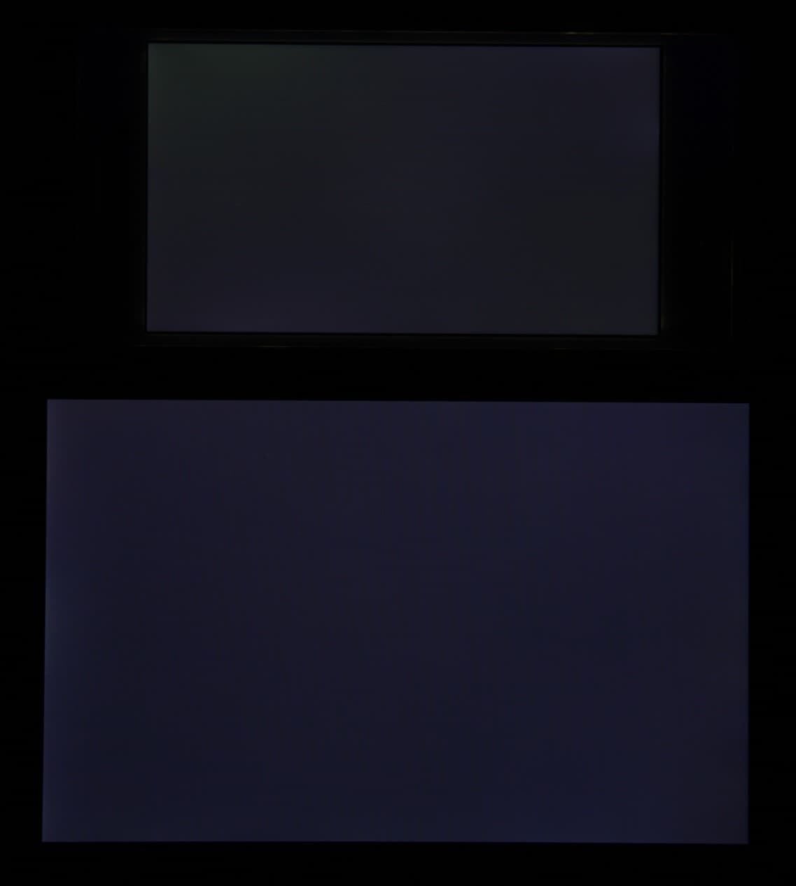 Яркость под углом у экранов уменьшилась (как минимум в 5 раз, исходя из разницы в выдержке), но в случае Sony Xperia M4 Aqua Dual падение яркости меньше. Черное поле при отклонении по диагонали высветляется сильно и приобретает зеленоватый оттенок или остается почти нейтрально-серым. Фотографии ниже это демонстрируют (яркость белых участков в перпендикулярном плоскости экранов направлении примерно одинаковая!):