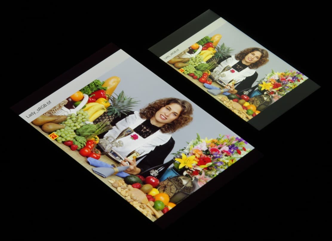 В итоге визуально цвета имеют естественную насыщенность. Баланс оттенков на шкале серого хороший, так как цветовая температура не сильно выше стандартных 6500 К, и отклонение от спектра абсолютно черного тела (ΔE) ниже 10, что для потребительского устройства считается хорошим показателем. При этом цветовая температура и ΔE мало изменяются от оттенка к оттенку — это положительно сказывается на визуальной оценке цветового баланса. (Самые темные области шкалы серого можно не учитывать, так как там баланс цветов не имеет большого значения, да и погрешность измерений цветовых характеристик на низкой яркости большая.)