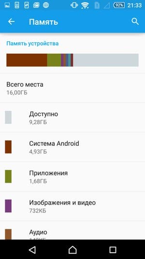 Объем оперативной памяти смартфона составляет 2 ГБ. В аппарате установлено 16 ГБ флэш-памяти, из которых не более 9,5 ГБ доступно для нужд самого пользователя. Впрочем, имеется несколько модификаций Sony Xperia M4 Aqua (E2303, E2353, E2312), у которых объем встроенной памяти составляет всего лишь 8 ГБ. Объем памяти можно увеличить за счет карт microSD, причем официально поддерживается объем таких карточек до 200 ГБ. На практике наша проверочная карта Transcend Premium microSDXC UHS-1 объемом 128 ГБ уверенно распозналась устройством. Режим подключения внешних устройств к порту Micro-USB (OTG) в Sony Xperia M4 Aqua Dual неожиданно не получил поддержки.