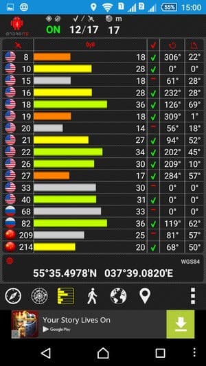 Навигационный модуль работает как с GPS, так и с отечественной системой Глонасс, спутники китайской Beidou (BDS) аппарат тоже видит. К навигационному модулю особых претензий нет, первые спутники при холодном старте опознаются в течение первой минуты. Также устройство оснащено сенсором магнитного поля, на основе которого функционирует компас навигационных программ.